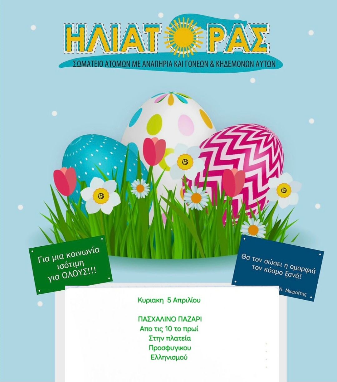 Πασχαλινό bazaar από το Σωματείο Ατόμων με Αναπηρία και Γονέων & Κηδεμόνων αυτών «ΗΛΙΑΤΟΡΑΣ»