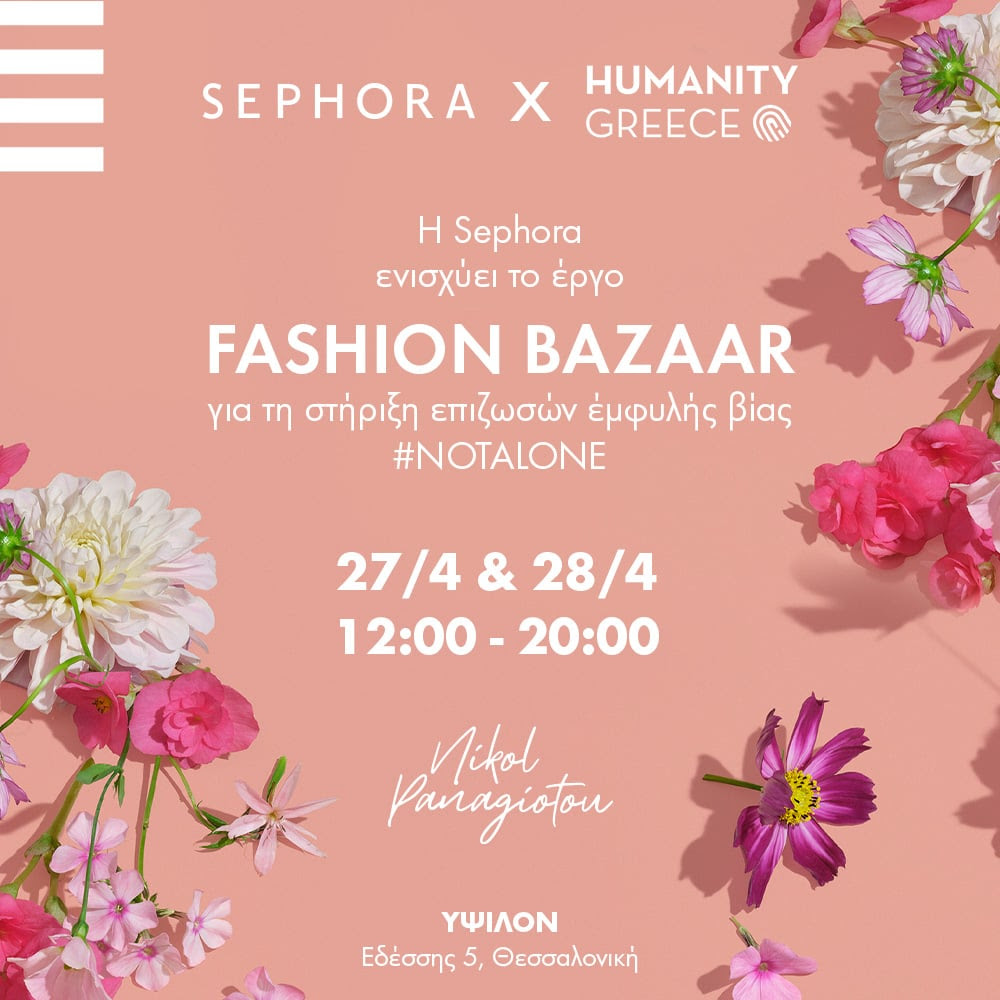 Παράλληλα, το δικό της ηχηρό μήνυμα ενάντια σε κάθε μορφή κακοποίησης στέλνει η SEPHORA στηρίζοντας έμπρακτα τις Γυναίκες και την ολιστική προσπάθεια υποστήριξης τους, ενώ θα βρίσκεται με ειδικό corner εντός του Fashion Bazaar for Women!