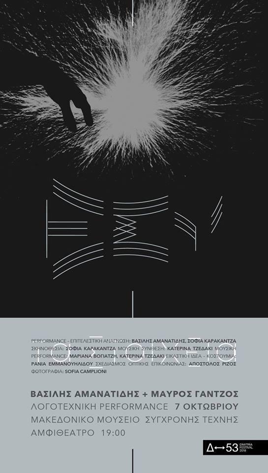 «εσύ: τα στοιχεία», λογοτεχνική performance, Βασίλης Αμανατίδης και «ΜΑΥΡΟΣ ΓΑΝΤΖΟΣ» στα 53α ΔΗΜΗΤΡΙΑ -SHOWCASE με ελεύθερη είσοδο.
