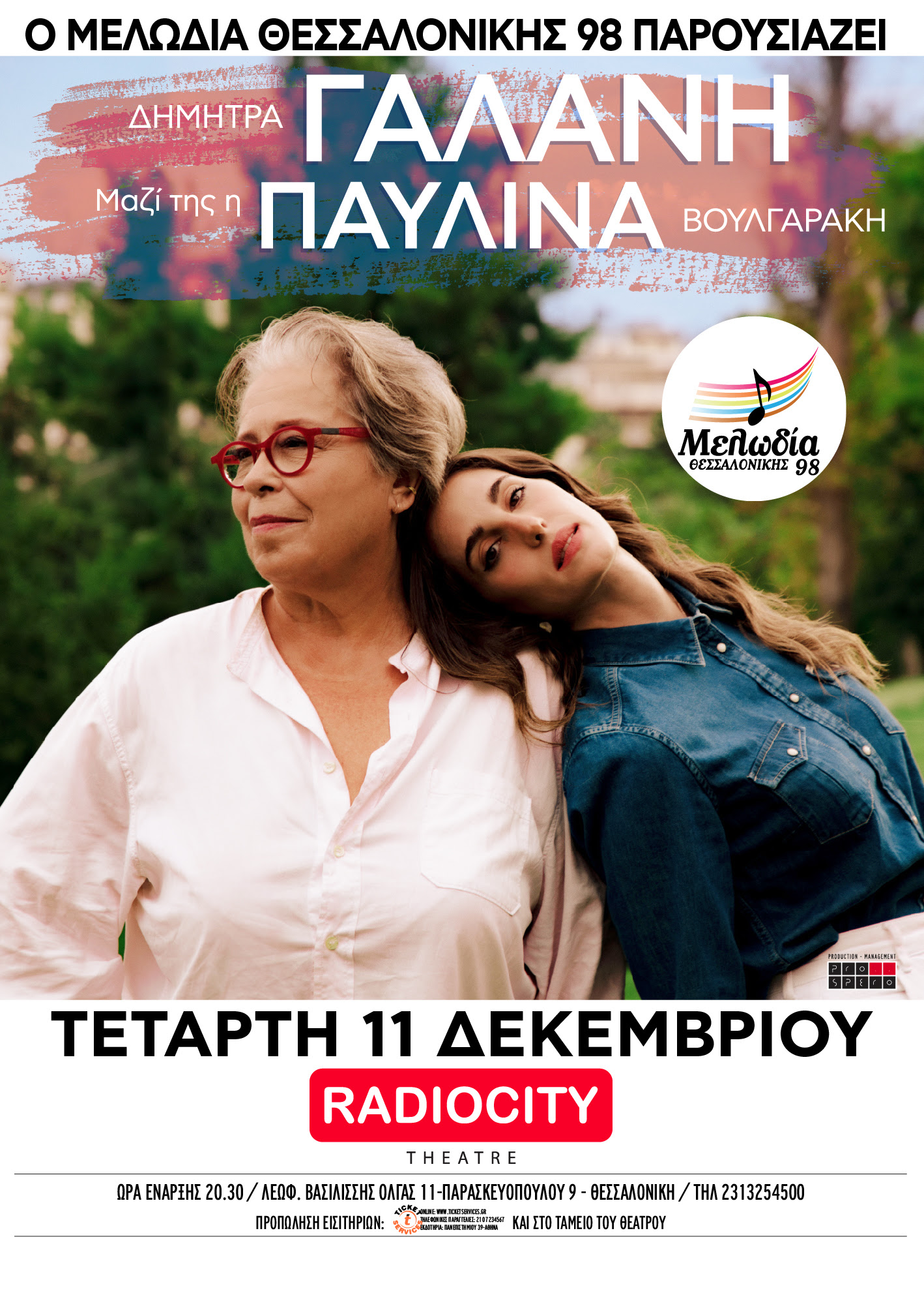 Σε ένα πρόγραμμα που θα έχει τη σφραγίδα της μεγάλης μας ερμηνεύτριας και θα συνοψίζει τη διαδρομή μιας ολόκληρης ζωής, η Δήμητρα Γαλάνη συνεργάζεται ξανά με νέους ανθρώπους, μουσικούς και καλλιτέχνες – δημιουργούς, που ξεχωρίζει. Και αυτή τη φορά επιλέγει από την σύγχρονη σκηνή την Παυλίνα Βουλγαράκη ταλαντούχα δημιουργό και ερμηνεύτρια, με την οποία έχει γράψει τα τραγούδια «Χίλιες ζωές» και «Δεν είπες κάτι» ενώ πρόσφατα συμμετείχε και στο τραγούδι «Καρδιά μου» (στίχοι/μουσική: Π.Βουλγαράκη- Σ.Γιαννακόπουλος).