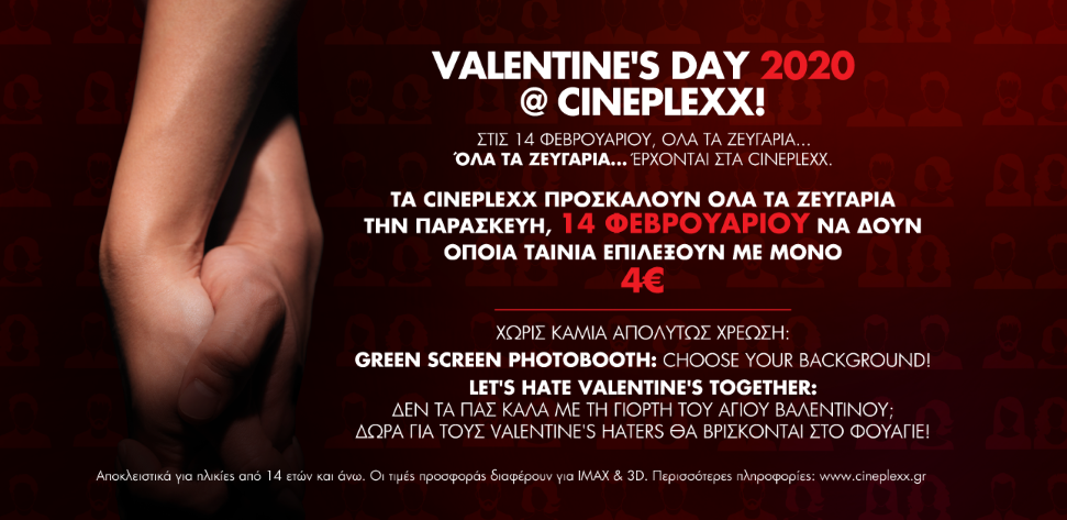 Τα Cineplexx προσκαλούν όλα τα ζευγάρια την Παρασκευή 14 Φεβρουαρίου να δουν όποια ταινία επιλέξουν με μόνο 4€!
