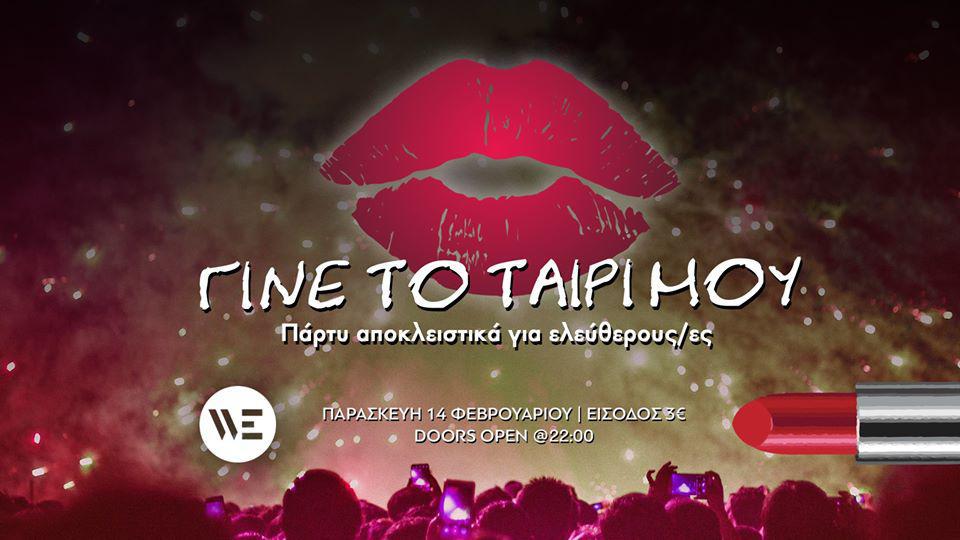 *Παρασκευή 14 Φεβρουαρίου 2020, στο WE (Γ΄Σεπτεμβρίου), Οι πόρτες ανοίγουν στις 22.00, Είσοδος 3 ευρώ, Είσοδος αυστηρά σε ελεύθερους/ες | Έξοδος αυστηρά σε ζευγάρια, Facebook Event