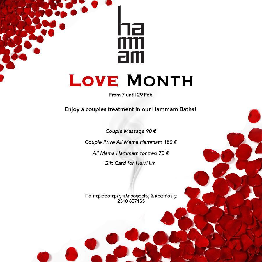 Η ημέρα των ερωτευμένων είναι η ιδανική υπενθύμιση για να εκφράσουμε το ενδιαφέρον και την αφοσίωσή μας, επιλέξτε ανάμεσα στις 15 υπηρεσίες του Hammam Baths και προσφέρεται την ως δώρο στο αγαπημένο σας πρόσωπο.