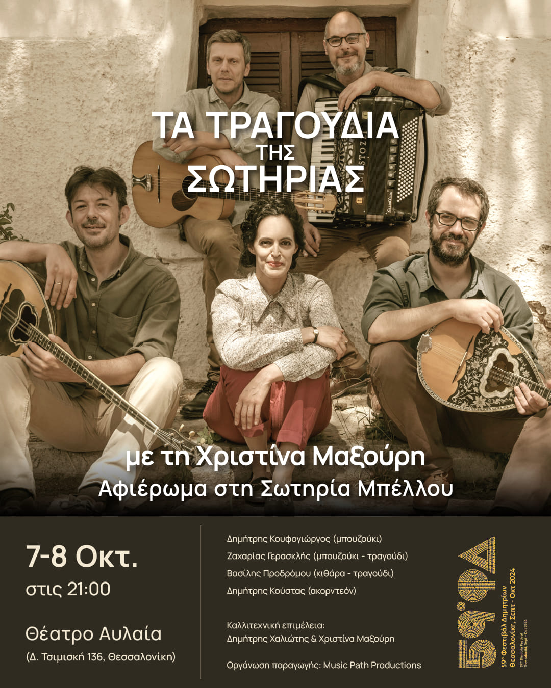 Στις 7 και 8 Οκτωβρίου 2024 «Τα τραγούδια της Σωτηρίας» παρουσιάζονται για πρώτη φορά στη Θεσσαλονίκη στο θέατρο Αυλαία στο πλαίσιο του φετινού προγράμματος για τα 59α Δημήτρια.