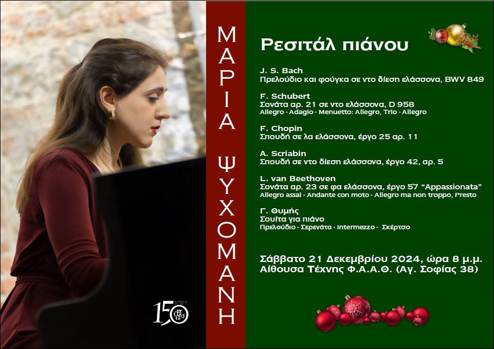 Ρεσιτάλ Πιάνου Μαρίας Ψυχομάνη | Αίθουσα Τέχνης Φιλόπτωχου Ταμείου Αδελφότης Ανδρών Θεσσαλονίκης