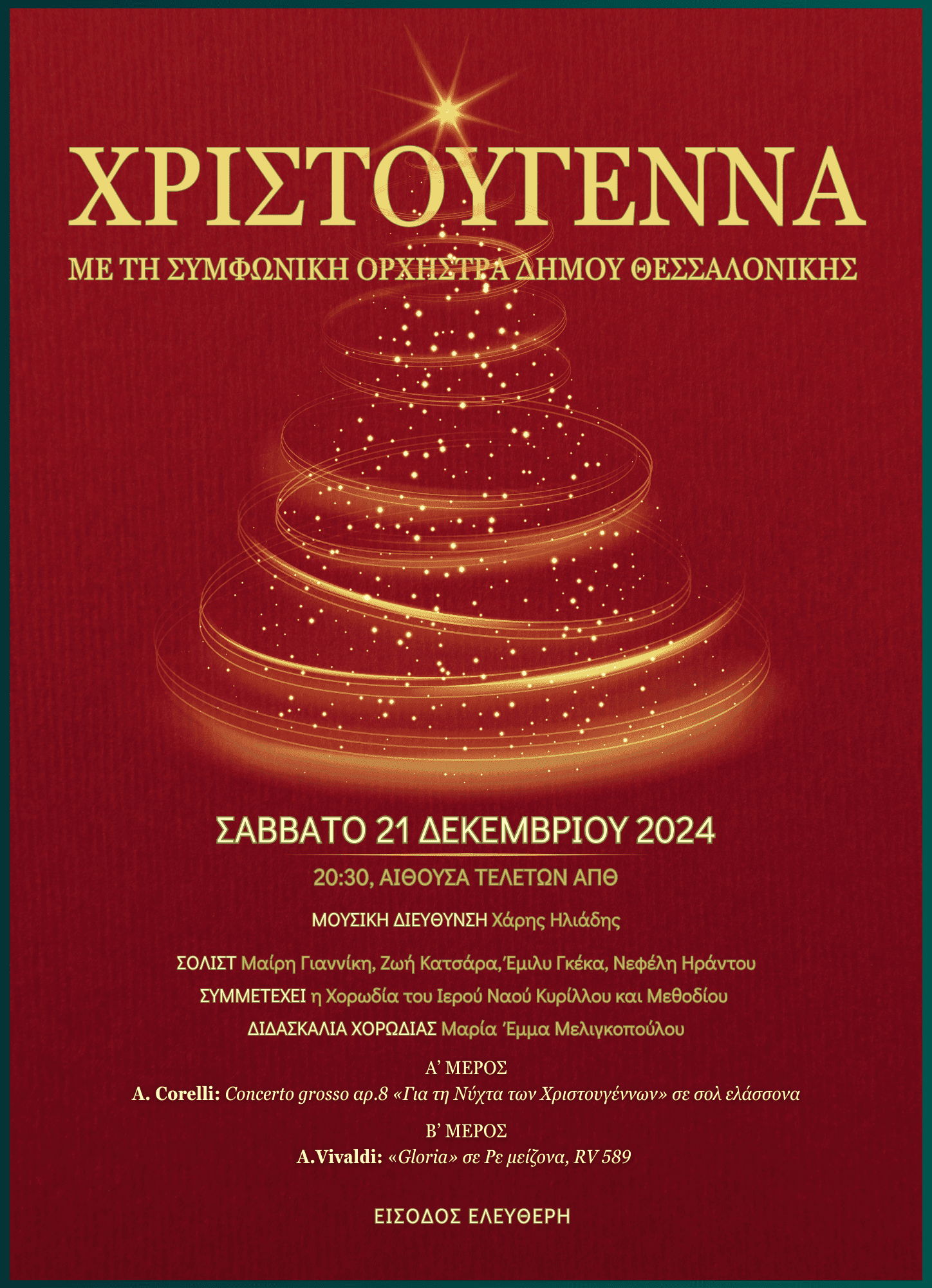 Σάββατο 21/12, στις 20:30 | Αίθουσα Τελετών Α.Π.Θ.