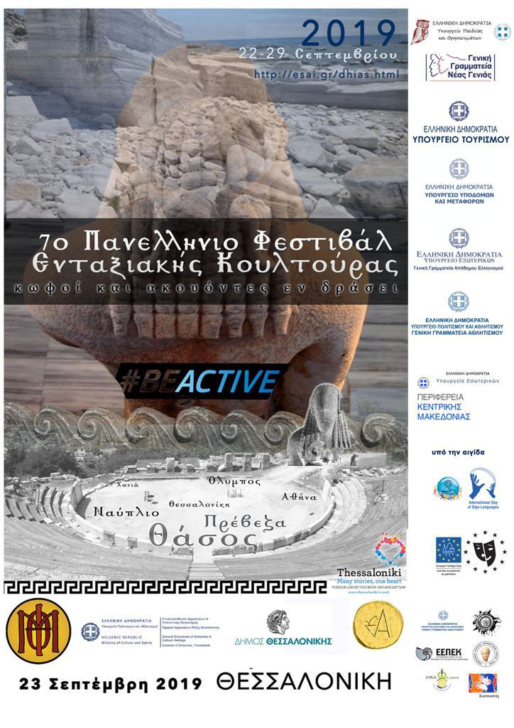 Το 7ο Πανελλήνιο Φεστιβάλ Ενταξιακής Κουλτούρας «Κωφοί και Ακούοντες εν Δράσει» (22-29 Σεπτεμβρίου 2019) ταξιδεύει και στη Θεσσαλονίκη, τη Δευτέρα 23 Σεπτεμβρίου 2019, με μια σειρά δράσεων, που τελούν υπό την αιγίδα της Περιφέρειας Κεντρικής Μακεδονίας.