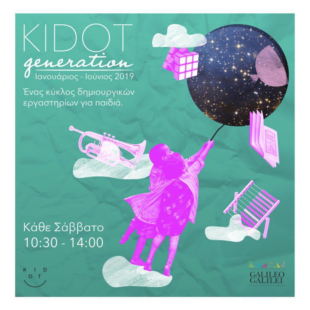 Από το Σάββατο 19 Ιανουαρίου και κάθε Σάββατο θα είναι αφιερωμένο σε δύο θεματικές, όπως τέχνες, ρομποτική, επιστήμες, μουσική, χορός, θέατρο κ.ά. προσκαλώντας τα παιδιά να ανακαλύψουν ένα συνδυασμό θεματικών μέσα από δημιουργικά βιωματικά αυτοτελή εργαστήρια. Οι ομάδες που θα διεξάγουν τα εργαστήρια είναι το καταρτισμένο προσωπικό από το Galileo Galilei Generation, αλλά και επαγγελματίες έμπειροι στο παιδικό κοινό, οι οποίοι αποτελούν επιλεγμένοι συνεργάτες της ομάδας KIDOT.