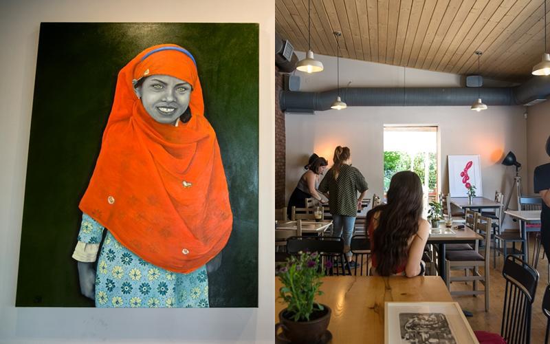 Στο coffee bar Bad Habit, στο εστιατόριο «Πόρτα Ανοιχτή» και στο Art Cafe-Bar Les Lazaristes φιλοξενούνται τα έργα των παιδιών από το τρίτο εργαστήριο, αλλά και των καθηγητών τους, καθώς «στην τέχνη δεν υπάρχει παλαιότερος και νεότερος», όπως τονίζει στην Parallaxi ο εικαστικός καλλιτέχνης και καθηγητής της Σχολής Καλών Τεχνών ΑΠΘ, Γιώργος Τσακίρης.