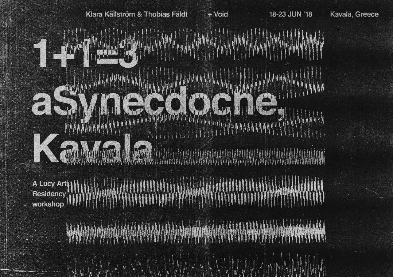 Τη Δευτέρα, 18 Ιουνίου ξεκινά το φωτογραφικό workshop ‘1+1=3 aSynecdoche, Kavala Workshop’ που θα διαρκέσει μέχρι την Παρασκευή, 22 Ιουνίου. Έντεκα φωτογράφοι και καλλιτέχνες που ασχολούνται ευρύτερα με την οπτική επικοινωνία, από Ελλάδα και εξωτερικό θα φιλοξενηθούν στην πόλη της Καβάλας, στο πλαίσιο του Lucy Art Residency. Η θεματική του workshop αφορά σε όλες τις φάσεις μιας φωτογραφικής αφήγησης: Από τα ερωτήματα που τίθενται πριν ακόμη πιεστεί το κλείστρο μέχρι τον σχεδιασμό και την έκδοση του φωτογραφικού βιβλίου.