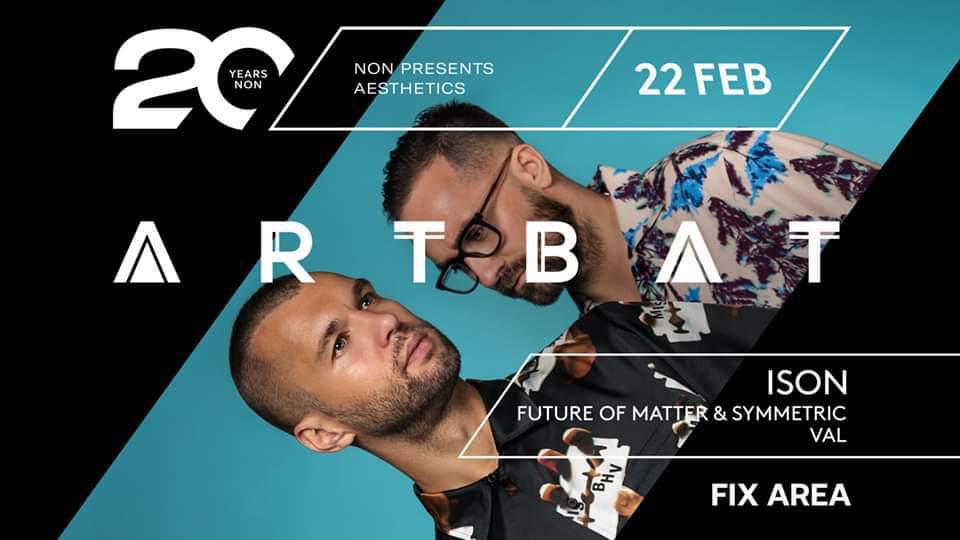 H σειρά aesthetics υποδέχεται για πρώτη φορά στη Θεσσαλονίκη τους ARTBAT. Το πιο επιτυχημένο μουσικό δίδυμο της Ουκρανίας, mε περισσότερες από δέκα κυκλοφορίες να πρωταγωνιστούν στα charts παγκοσμίως και κατακτώντας τα dancefloors σε όλο τον πλανήτη, οι ARTBAT είναι αυτή τη στιγμή ένα από τα πιο αναγνωρισμένα και περιζήτητα acts στον χώρο της μελωδικής τέκνο. Στο line up της βραδιάς στο FIX, ISON, FUTURE OF MATTER και SYMMETRIC από τη ΝΟΝ, ενώ τη βραδιά ανοίγει ο VAL.