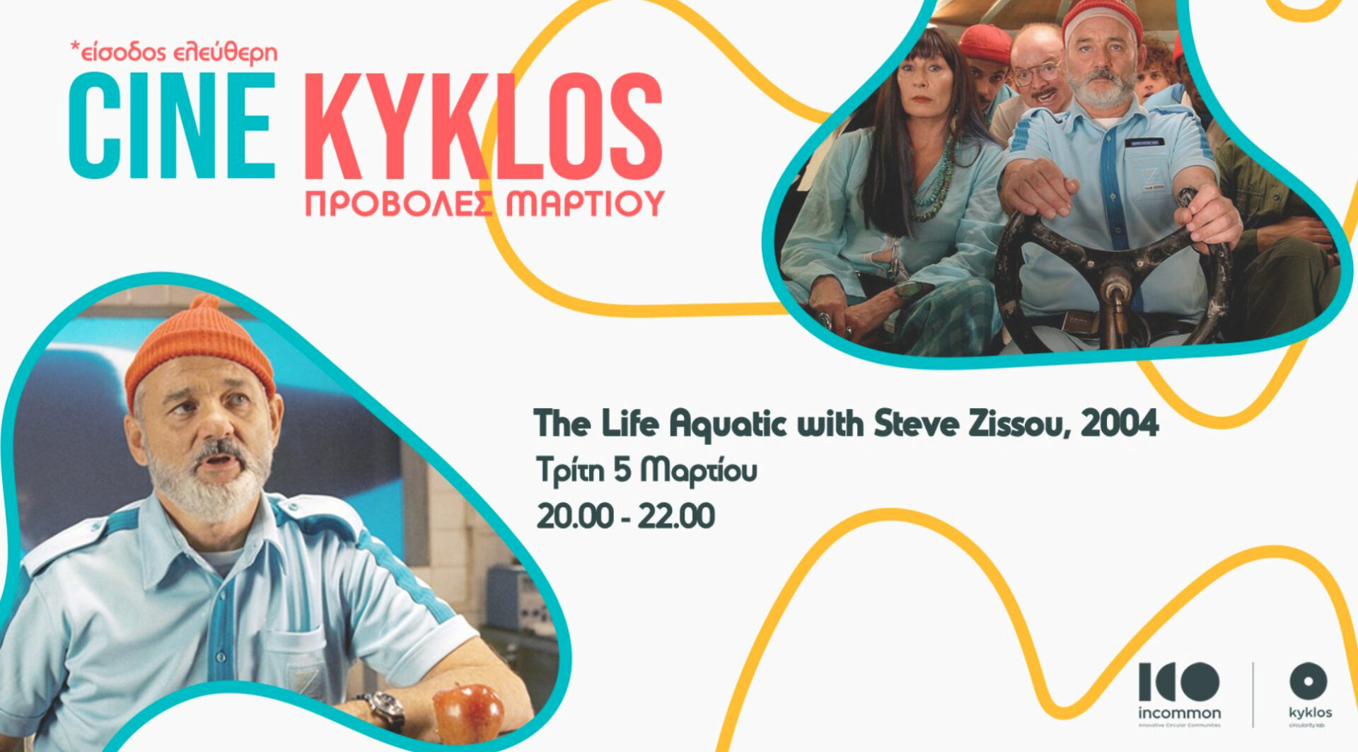 Ο Κύκλος, το εργαστήρι της InCommon, συνεχίζει το πρόγραμμα των δωρεάν κινηματογραφικών προβολών στο χώρο του, στην Άνω Πόλη Θεσσαλονίκης. Οι προβολές ξεκινούν και εστιάζουν στο τρίπτυχο περιβάλλον-άνθρωπος-οικονομία. Την Τρίτη 5 Μαρτίου στις 20.00, πάρτε το επαναχρησιμοποιούμενο σκεύος σας για ποπ – κορν και πάτε να απολαύσετε την πολύχρωμη ταινία ‘’The Life Aquatic with Steve Zissou’’!