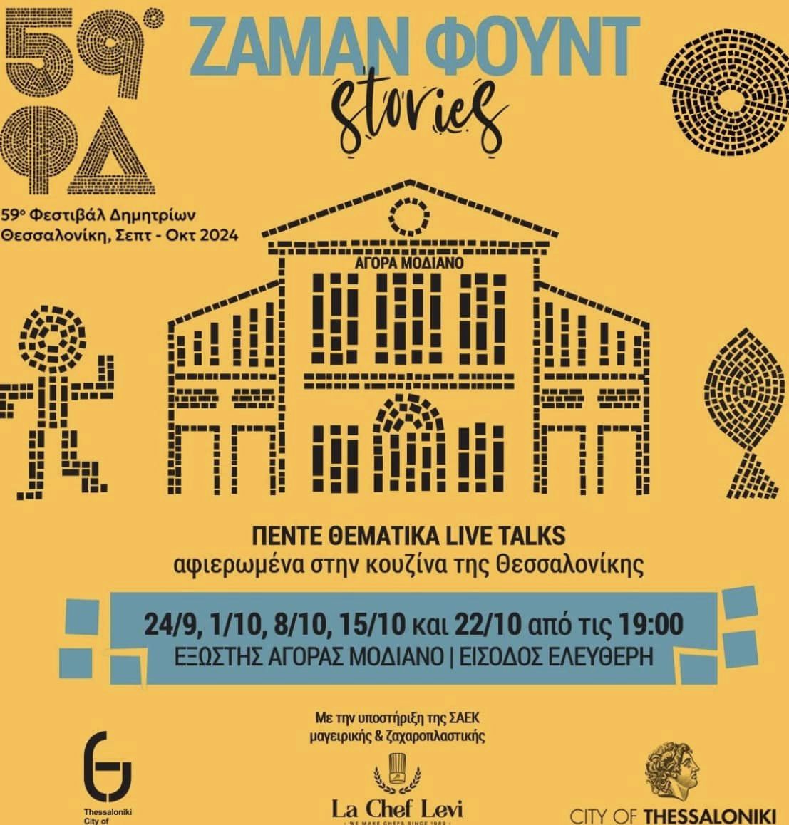 Ο Δήμαρχος Θεσσαλονίκης, Στέλιος Αγγελούδης και ο Αντιδήμαρχος Πολιτισμού, Τουριστικής Ανάπτυξης και Διαδημοτικής Συνεργασίας, Βασίλειος Γάκης, σας προσκαλούν στην εκδήλωση “Ζαμάν Φουντ Stories”, στο πλαίσιο των 59ων Δημητρίων.