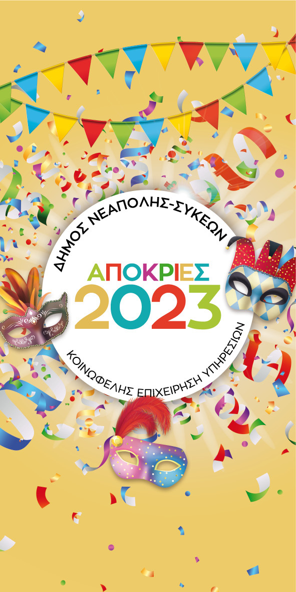 Πανέτοιμος ο δήμος Νεάπολης- Συκεών μπαίνει, και επίσημα, από την επόμενη εβδομάδα, σε ρυθμούς Αποκριάς, με δεκάδες εκδηλώσεις για μικρούς και μεγάλους, από την Τσικνοπέμπτη μέχρι και την Καθαρά Δευτέρα, να έχουν σχεδιαστεί για να σκορπίσουν χαμόγελα, αισιοδοξία, χαρά και γιορτινή διάθεση.