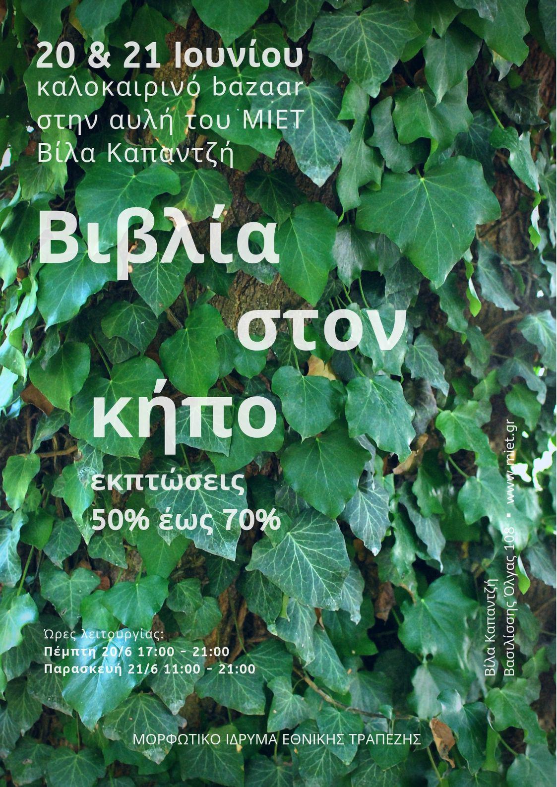 Το ΜΙΕΤ Θεσσαλονίκη διοργανώνει στην αυλή του, στη Βίλα Καπαντζή, καλοκαιρινό Bazaar βιβλίων την Πέμπτη 20 και την Παρασκευή 21 Ιουνίου 2019.