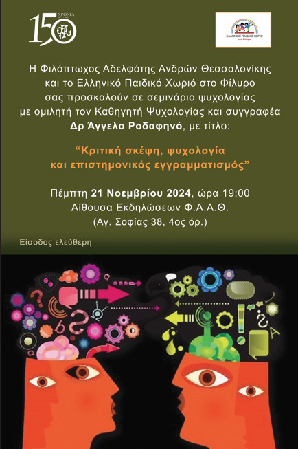 Σεμινάριο ψυχολογίας με τίτλο: «Κριτική σκέψη, ψυχολογία και επιστημονικός εγγραμματισμός» | Αίθουσα Εκδηλώσεων Φ.Α.Α.Θ
