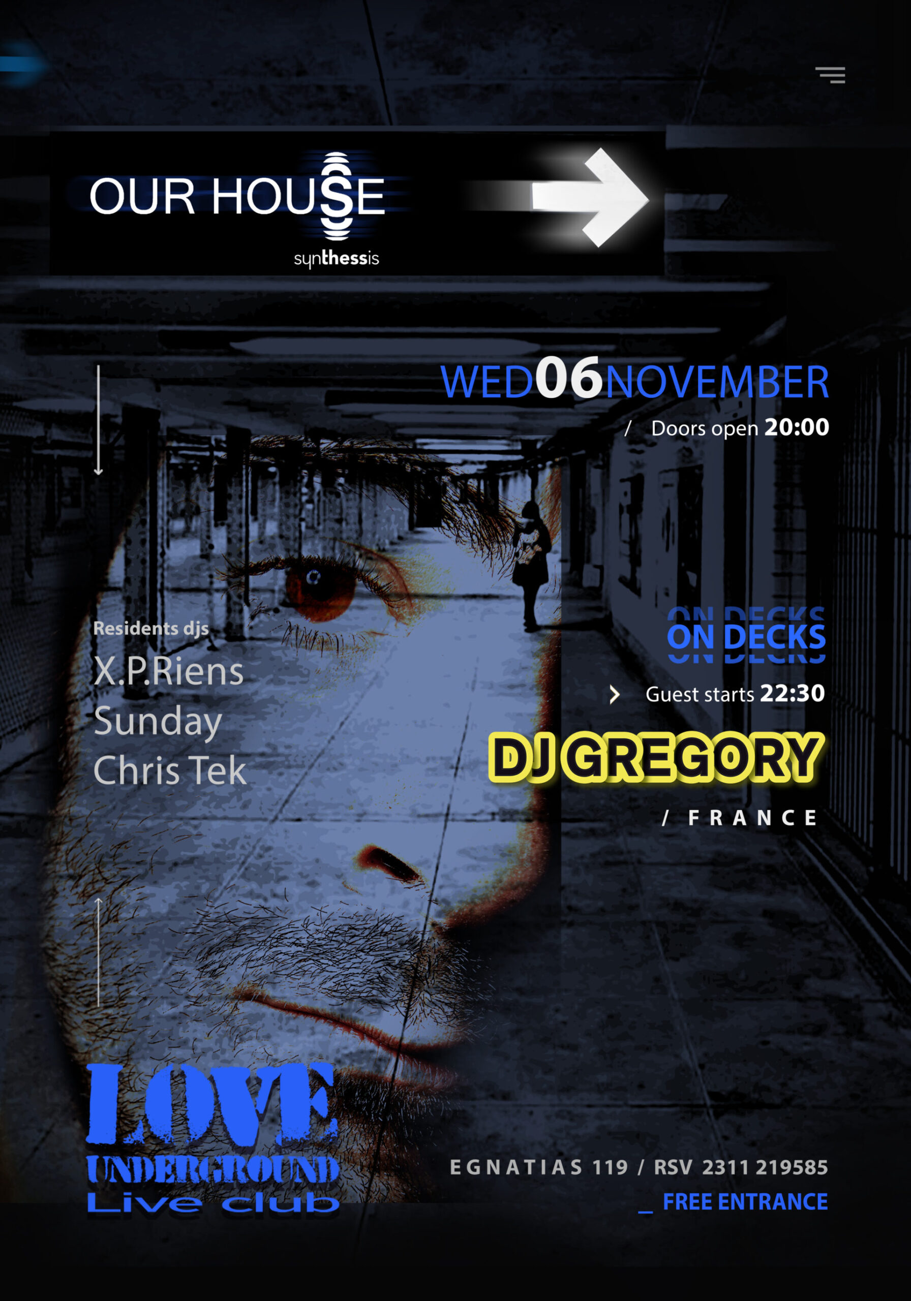 Η ομάδα synthessis και το Love Underground, παρουσιάζουν έναν από τους κορυφαίους djs και παραγωγούς της Γαλλικής ηλεκτρονικής μουσικής σκηνής τον Dj Gregory.
