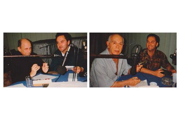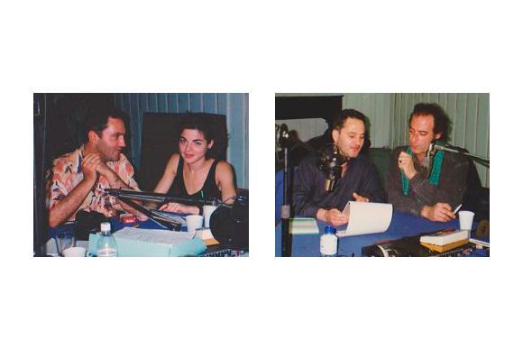 Ξεκίνησα την ηχογραφημένη ραδιοφωνική εκπομπή «φανταστικές συνεντεύξεις» το 1989 από τον 102 FM της ΕΤ3, με προϊστάμενο τον Μιχάλη Αλεξανδρίδη. Άντεξα για δέκα μήνες. Όταν αποφάσισα να διακόψω τη συνεργασία, ο Μιχάλης προσπάθησε να με αποτρέψει. Είχα γλυκαθεί με την αμοιβή (μεγάλο διάστημα πλήρωνα όλους τους συνεργάτες από τις δικές μου απολαβές), τότε που η ενασχόλησή μου με το θέατρο απέφερε συμβολικά μόνο ποσά, αλλά η εκπομπή με εξουθένωνε επειδή απαιτούσε – ή εγώ πίστευα ότι έπρεπε να ανταποκριθώ σε μεγάλες προσδοκίες – σοβαρή προεργασία, παρότι εβδομαδιαία. Το μετάνιωσα που έφυγα νωρίς. Ενδιαφέρθηκε έκτοτε ο Κωστής Μοσκώφ να την εντάξει στον διαδημοτικό σταθμό «Ένατο Κύμα», όμως δεν ευοδώθηκε… Έκανα κι άλλες απόπειρες εν συνεχεία προς διάφορους σταθμούς με αρνητικό αποτέλεσμα. Το 1994 συναντήθηκα με τη Βάνα Χαραλαμπίδου, λίγο πριν της ανατεθεί η διεύθυνση του 9.58, νέα συχνότητα για ένα πολιτιστικό ραδιόφωνο της ΕΤ3, ενόψει της «Πολιτιστικής Πρωτεύουσας Ευρώπης». Με συμπεριέλαβε αμέσως στους πρώτους συνεργάτες της και ξεκίνησε ο επόμενος μεγάλος κύκλος των «φανταστικών συνεντεύξεων», διαρκείας έξι χρόνων. Στο ενδιάμεσο δοκίμασα μια (ανούσια) παραλλαγή με τίτλο «Σε πρώτο πρόσωπο» και παράλληλα διάβαζα αποσπάσματα από το «Αναζητώντας το χαμένο χρόνο» του Προυστ σε ξεχωριστό ημίωρο – σύντομα επέστρεψα πάλι και αποκλειστικά στις «φ.σ.». Πέρα από τα κείμενα που έπρεπε να συνθέτω υπό μορφή διαλόγου, με στοιχεία αντλημένα από διάφορες πηγές, κάθε φορά έψαχνα το καταλληλότερο άτομο (συνήθως ηθοποιός) που θα ταίριαζε για να «δανείσει» τη φωνή του στη φιλοξενούμενη προσωπικότητα – αν δεχόταν κι αν ευκαιρούσε τη μέρα και την ώρα της εγγραφής, χώρια οι πρόβες… Υπολογίζω τον αριθμό των εκπομπών σε τουλάχιστον τετρακόσιες. Πολλές από τις εγγραφές καταστράφηκαν (τρεις μέρες πριν την ανάρτηση, έμαθα ότι διασώθηκαν μόνο 20!), γιατί υπήρχε έλλειψη μαγνητοταινιών στο σταθμό… [αρχική «φωτο» ο κατάλογος των πρώτων εκπομπών στον 102FM, όπως τον δημοσίευσε ο Γ. Χρονάς στο περιοδικό του «Οδός Πανός» το 1992].