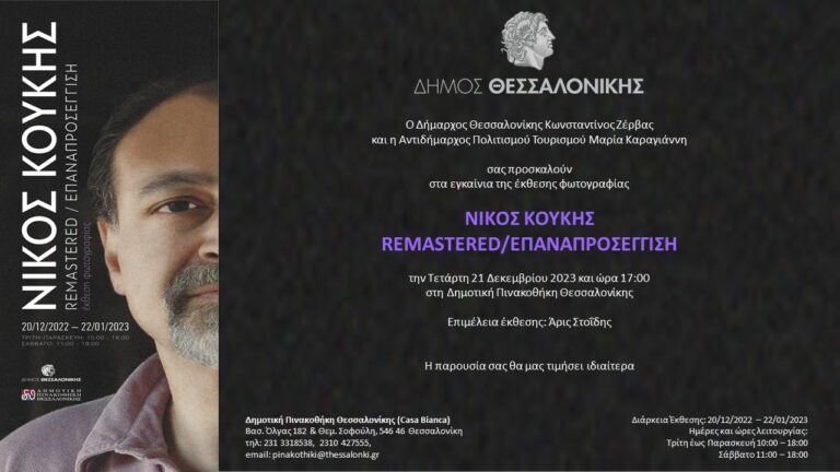 *Διάρκεια έως 22 Ιανουαρίου 2023 | Δημοτική Πινακοθήκη Θεσσαλονίκης (Casa Bianca) | Τρίτη έως Παρασκευή 10:00 – 18:00, Σάββατο 11:00 – 18:00 | Τηλ. 2313 318538, 2310 427555