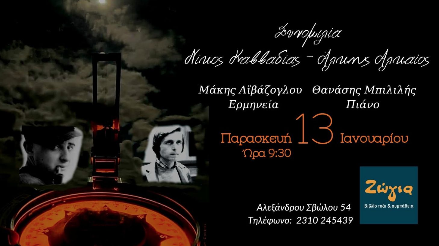 *Παρασκευή 13 Ιανουαρίου στις 21:30 | Ζώγια -Βιβλίο Τσάι και Συμπάθεια (Αλεξάνδρου Σβώλου 54) | Εισιτήριο 8 €