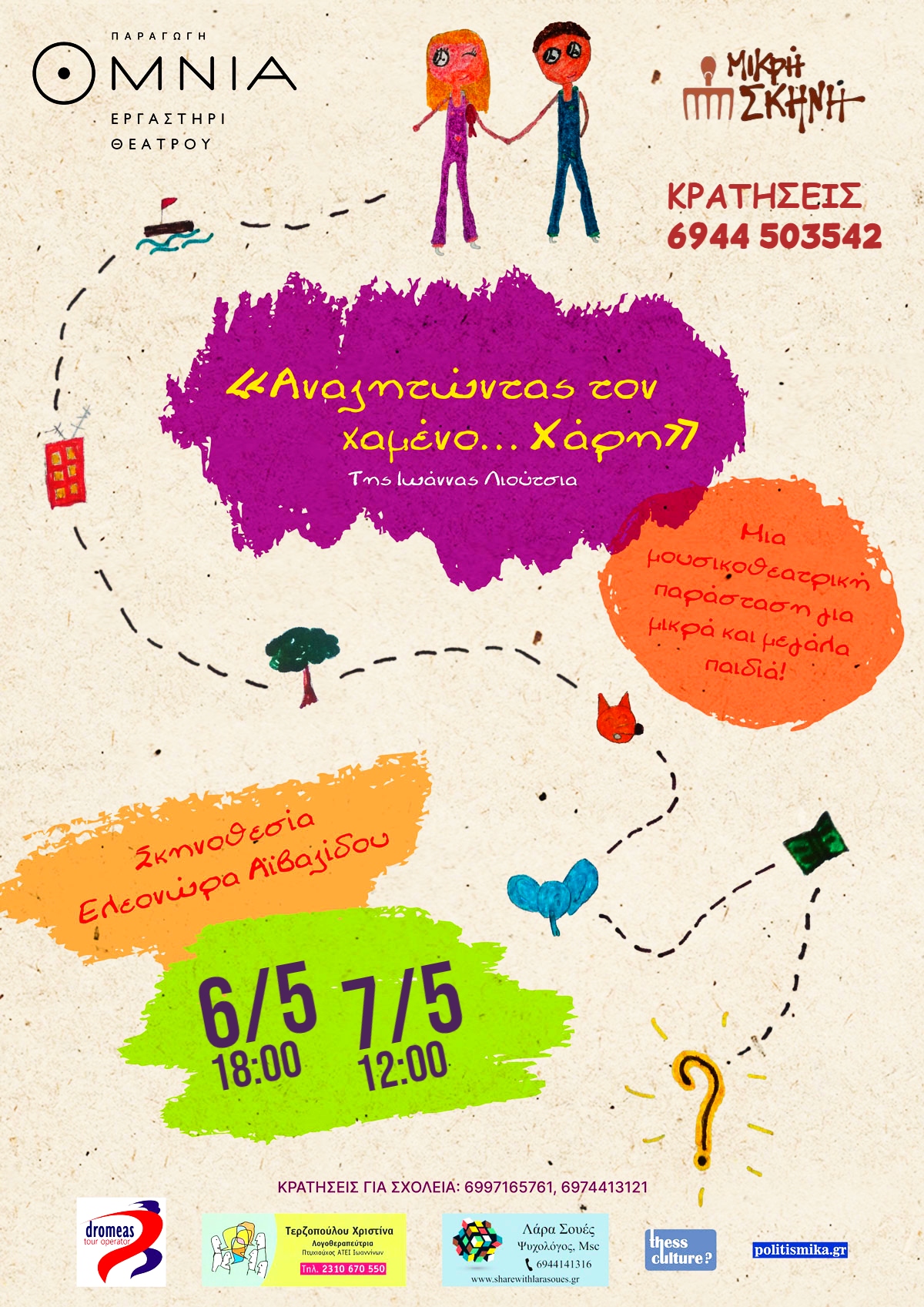 *Σάββατο: 06/5 στις 18:00, Κυριακή: 07/5 στις 12:00 | Μικρή Σκηνή (Επταλόφου 14, Κ. Τούμπα) | Τηλ. Κρατήσεων: 6944 503542 | Τιμές εισιτηρίων: 8 ευρώ | Για παιδιά από 3+