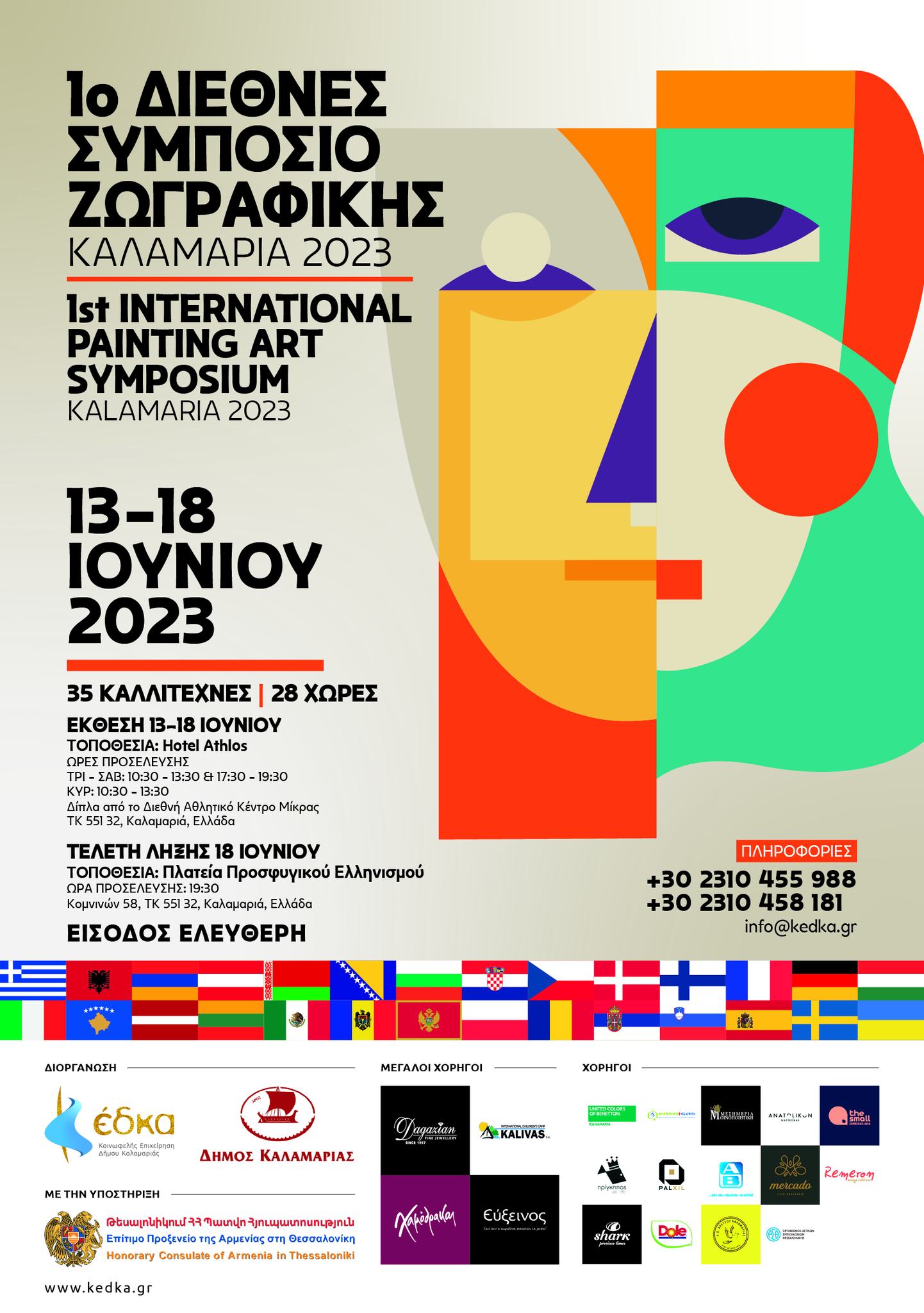 Ο Δήμος Καλαμαριάς σε συνεργασία με την Κ.Ε.Δ.ΚΑ διοργανώνει το 1ο Διεθνές Συμπόσιο Ζωγραφικής – Καλαμαριά 2023. Το Συμπόσιο θα είναι ανοιχτό για το κοινό και θα διεξαχθεί στο ξενοδοχείο Athlos, όπου οι επισκέπτες θα μπορέσουν να δουν από κοντά 35 διεθνώς αναγνωρισμένους και καταξιωμένους καλλιτέχνες, από 28 διαφορετικές χώρες, κυρίως Ευρώπη, Ασία και Λατινική Αμερική, να δημιουργούν ζωντανά τα νέα τους έργα, τα οποία με την σειρά τους θα εκτεθούν κατά την τελετή λήξης του συμποσίου στις 18 Ιουνίου στη Πλατεία Προσφυγικού Ελληνισμού.