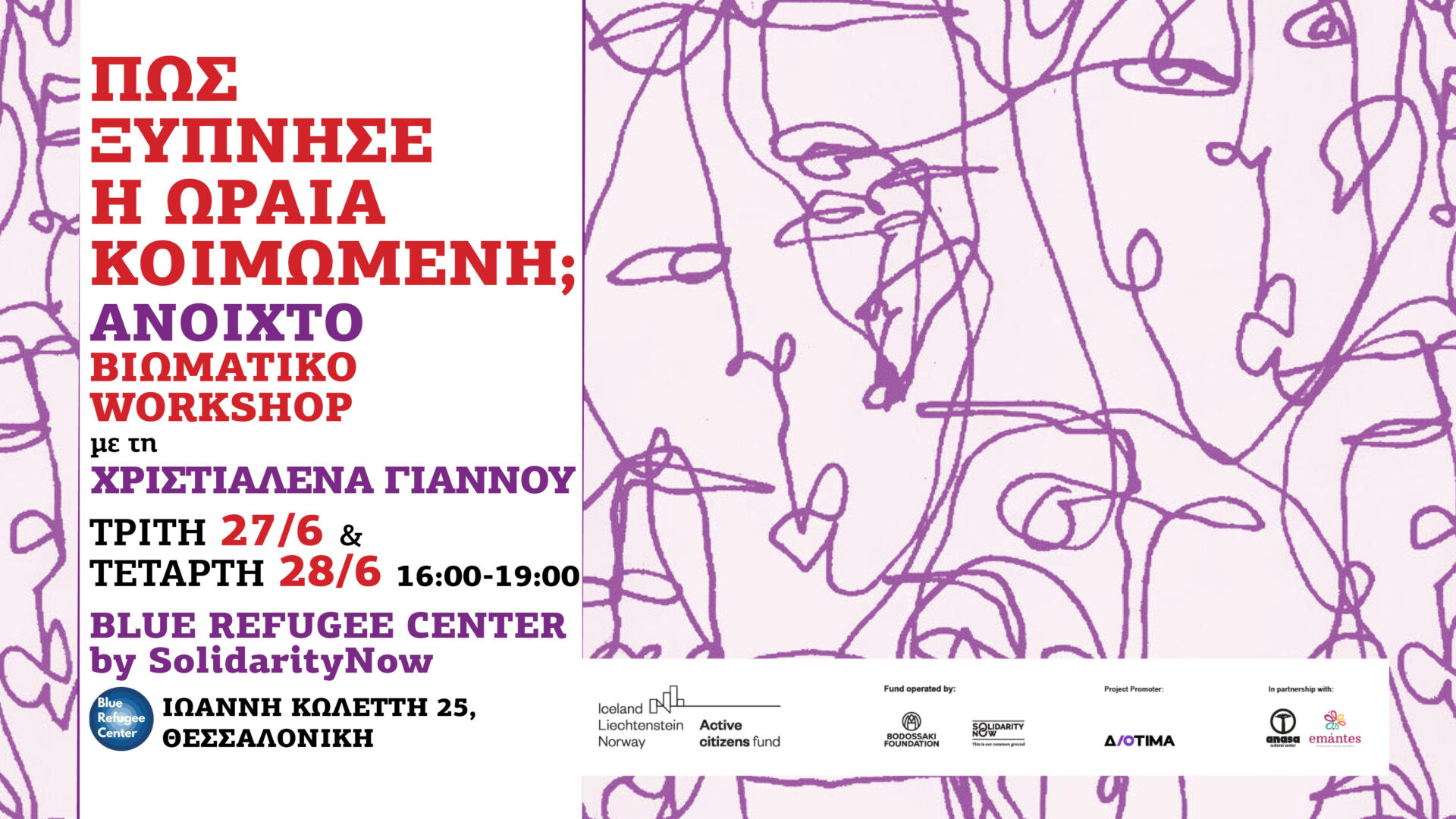 *Τρίτη 27/6 & Τετάρτη 28/6, 16:00-19:00 | Blue Refugee Center by SolidarityNow, Ιωάννη Κωλέττη 25, Θεσσαλονίκη | Δηλώσεις συμμετοχής: https://forms.gle/