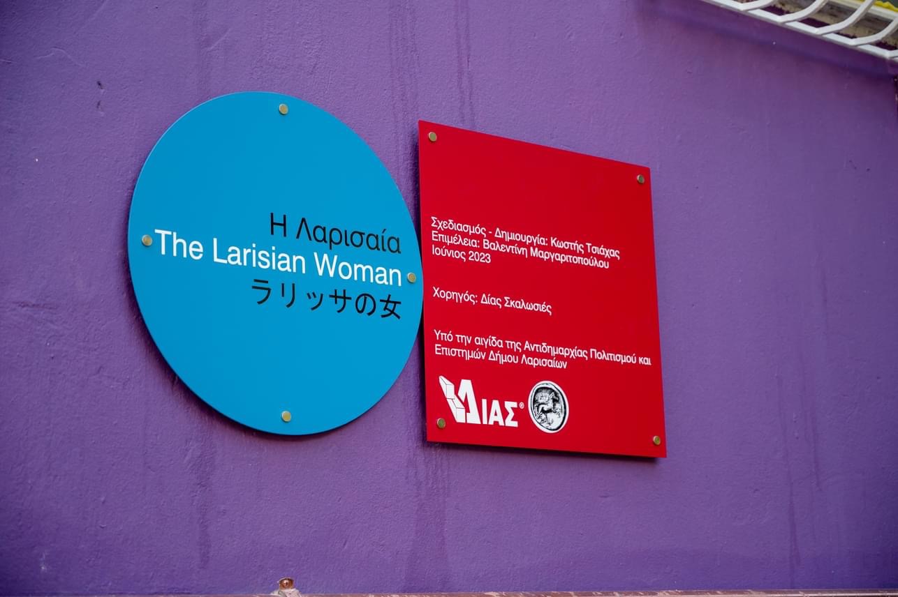 Σε μία χειρονομία σεβασμού και ένδειξη αγάπης προς την Ελληνική ενδυματολογική παράδοση, την Ιαπωνική γραφιστική σχολή και την ίδια την γυναίκα, δημιουργήθηκε η τοιχογραφία «Η Λαρισαία» σε πλαϊνό τοίχο πολυκατοικίας στο πάρκο Ο.Σ.Ε. (Μπασδέκη 1, Λάρισα) από τον visual designer, Κωστή Τσιάχα, σε επιμέλεια της εικαστικής επιμελήτριας / μουσειολόγου, Βαλεντίνης Μαργαριτοπούλου, με αποκλειστική χορηγία της εταιρείας DIAS Scaffoldings και υπό την αιγίδα της Αντιδημαρχίας Πολιτισμού και Επιστημών του Δήμου Λαρισαίων.