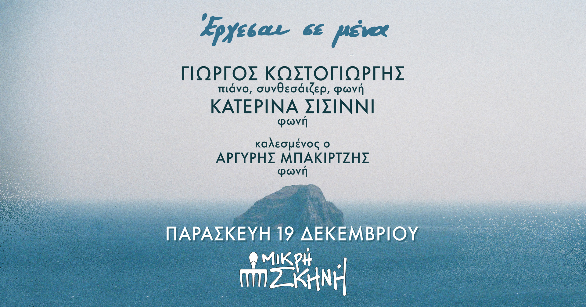 Μετά το sold out του Μαΐου, ξανά. Την Παρασκευή 19 Δεκεμβρίου και με αφορμή την επερχόμενη κυκλοφορία του τρίτου του άλμπουμ, o Γιώργος Κωστογιώργης μαζί με την Κατερίνα Σισίννι και τους αγαπημένους τους μουσικούς συνοδοιπόρους, σας προσκαλούν σε μία εορταστική συναυλία στη Μικρή Σκηνή.
