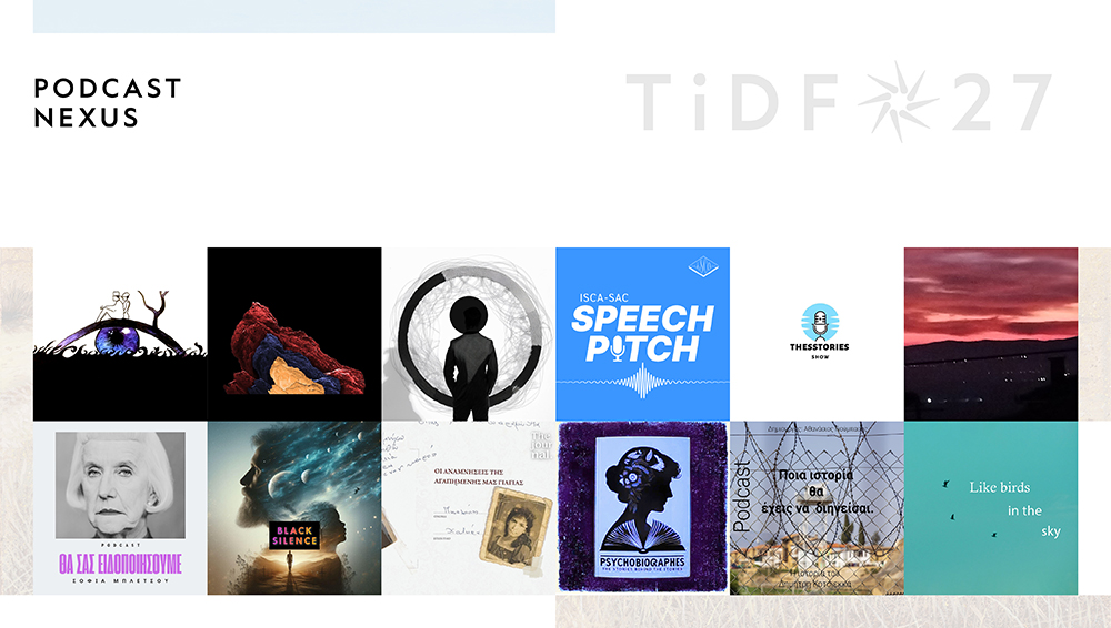 Το Διεθνές Φεστιβάλ Ντοκιμαντέρ Θεσσαλονίκης, ένα από τα πρώτα φεστιβάλ στον κόσμο που διερεύνησε τις εκλεκτικές συγγένειες ανάμεσα στα πόντκαστ και τον κινηματογράφο, παρουσιάζει για μία ακόμη χρονιά το Τμήμα Podcast, που έχει μετατραπεί σε αναπόσπαστο κομμάτι του φεστιβαλικού προγράμματος, σημειώνοντας μεγάλη επιτυχία. Στη φετινή διοργάνωση θα πάρουν μέρος συνολικά 22 ελληνόφωνα και αγγλόφωνα πόντκαστ, στο Διαγωνιστικό Podcast και στην Ενότητα Nexus. Στο Διαγωνιστικό Τμήμα συμμετέχουν 10 πόντκαστ, διεκδικώντας το Βραβείο Καλύτερου Podcast, το οποίο συνοδεύεται από χρηματικό έπαθλο 2.000 ευρώ. Την τριμελή κριτική επιτροπή του Διαγωνιστικού Podcast του 27ου ΦΝΘ απαρτίζουν οι: Μαρίνα Δανέζη (σκηνοθέτρια-παραγωγός), Εύη Καρκίτη (δημοσιογράφος-ραδιοφωνική παραγωγός) και Κατερίνα Πουλοπούλου (δημοσιογράφος-ραδιοφωνικός παραγωγός).