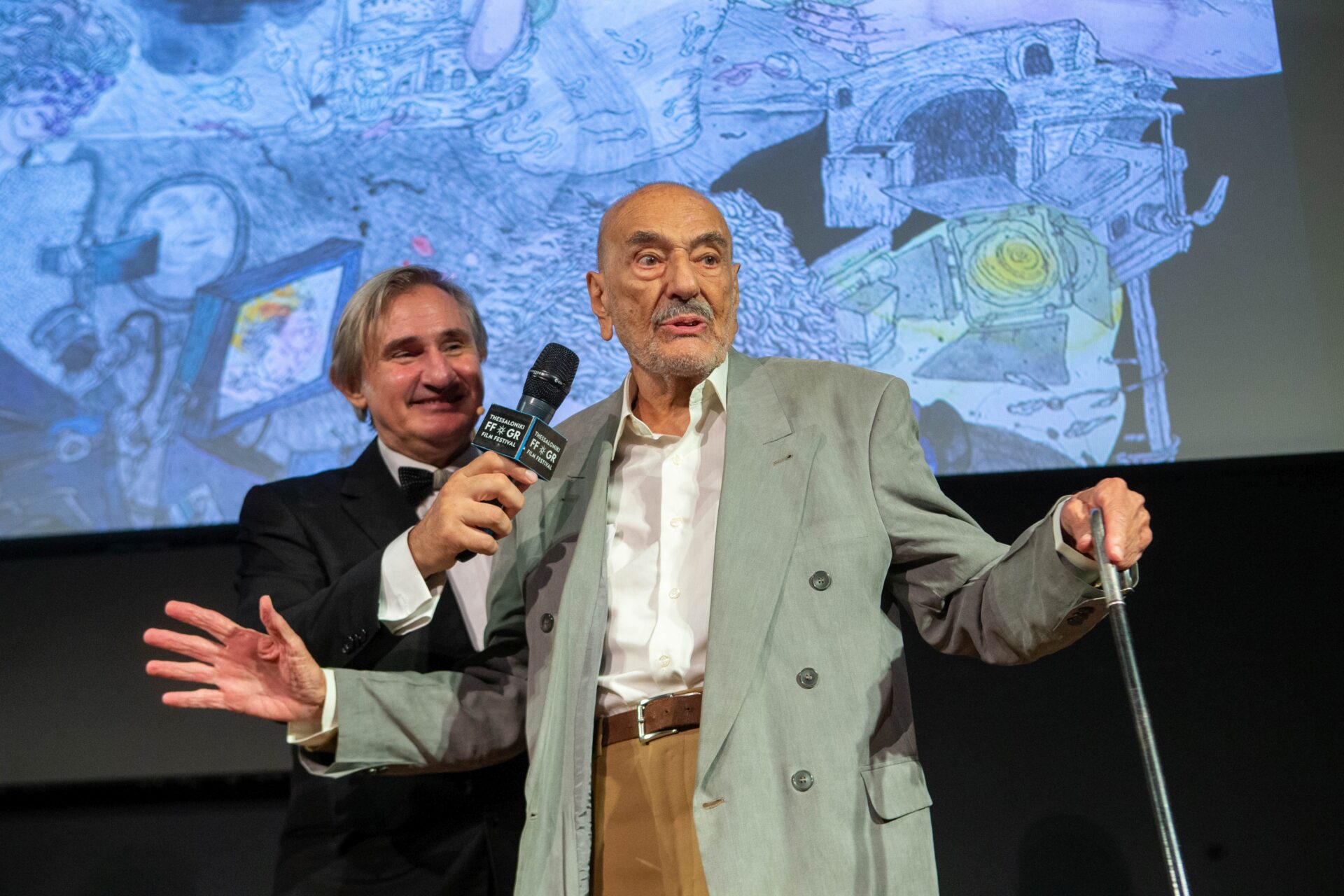 Λίγα λόγια μοιράστηκε έπειτα με το κοινό ο εκπρόσωπος της Finos Film, Στάθης Καμβασινός: «Είναι μια πολύ συγκινητική στιγμή, και είμαστε πολύ περήφανοι στη Finos Film που συμπράττουμε σε αυτή την όμορφη κίνηση του Φεστιβάλ. Δυστυχώς, πολλοί από τους σπουδαίους ηθοποιούς εκείνης της εποχής δεν είναι πια μαζί μας, όμως έχουμε ιερά τέρατα απόψε εδώ, όλες και όλοι τους συντελεστές και πυλώνες σε μια εποχή που άφησε ιστορία και μας άφησε πολλές πραγματικά καλές ταινίες, που έχουν διασωθεί μέχρι και σήμερα στη συνείδηση του κοινού, μέσα σε μια συνθήκη κινηματογραφικής πανσπερμίας», σημείωσε.