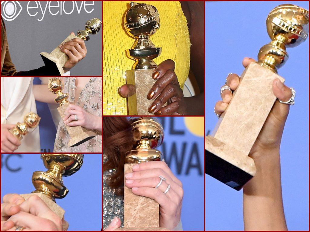Ακριβώς από κάτω το ακροατήριο του βρίσκεται ο αφρός της κινηματογραφικής βιομηχανίας. Θα είναι όλοι και όλες ντυμένοι και ντυμένες στα μαύρα, μια συμβολική κίνηση διαμαρτυρίας για τις συνεχόμενες αποκαλύψεις σε σχέση με το σκάνδαλο σεξουαλικών παρενοχλήσεων στο Χόλυγουντ. Η Όπρα Γούινφρει θα σηκωθεί στα μισά της τελετής για να παραλάβει το τιμητικό βραβείο της. Λίγο πιο πέρα ο φακός της τηλεόρασης θα προσπαθεί να μετρήσει τις αντιδράσεις της Μέριλ Στριπ.