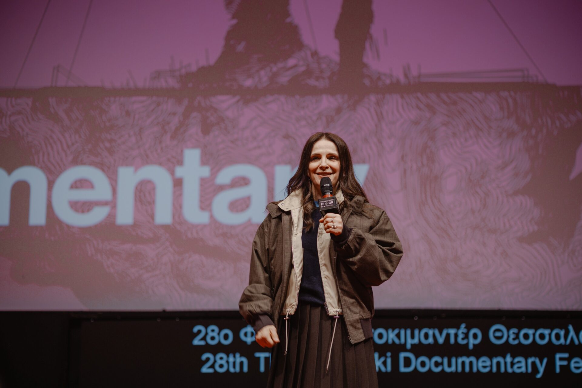 Το 28ο Φεστιβάλ Ντοκιμαντέρ Θεσσαλονίκης υποδέχτηκε το βράδυ της Τρίτης τη σπουδαία γαλλίδα σταρ Ζιλιέτ Μπινός στην κατάμεστη αίθουσα του Ολύμπιον για την ειδική προβολή του ντοκιμαντέρ In-I In Motion, που σηματοδοτεί το σκηνοθετικό ντεμπούτο της διάσημης και πολυβραβευμένης ηθοποιού.