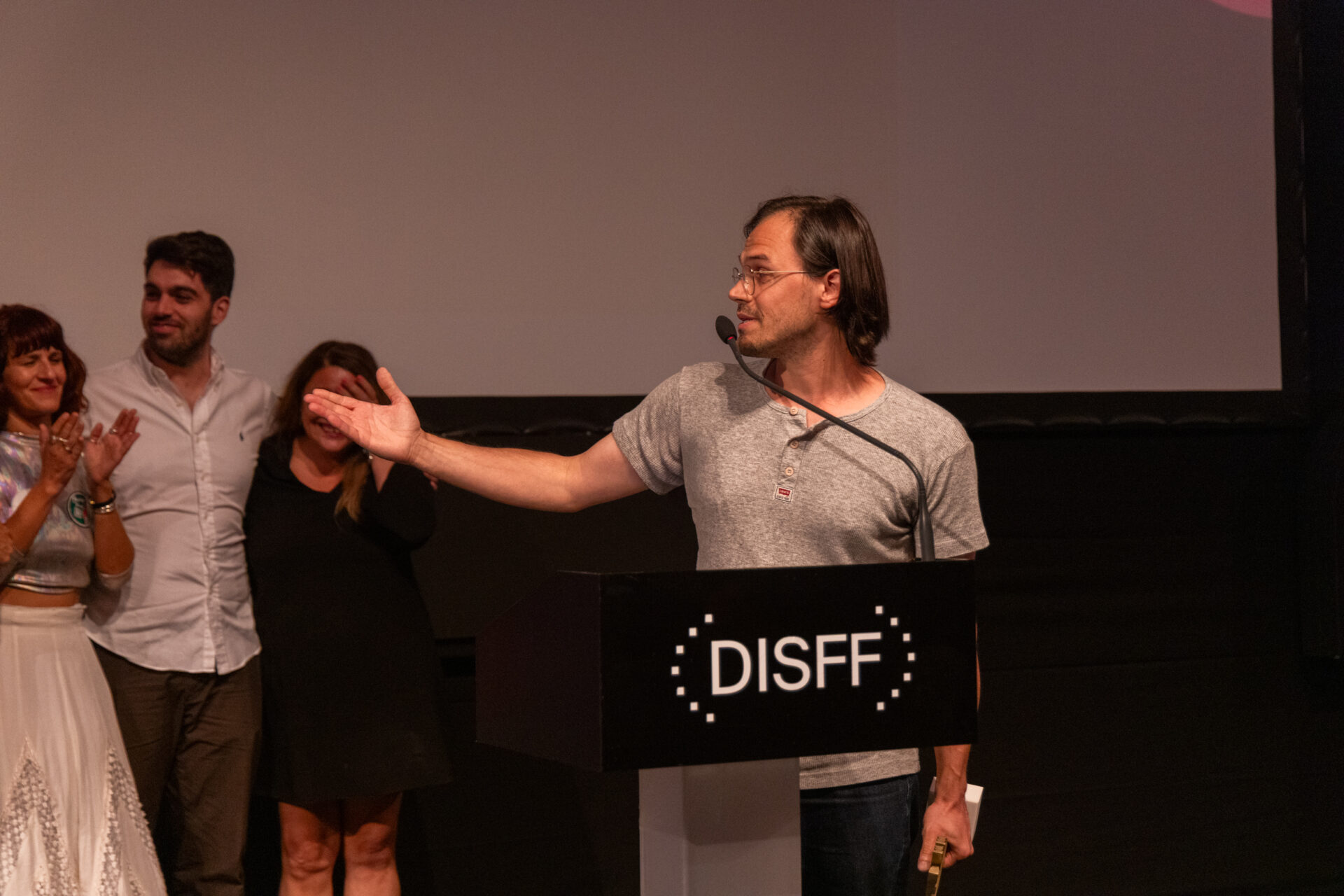 Έντονη ήταν η ατμόσφαιρα στην απονομή των βραβείων του Φεστιβάλ Ταινιών Μικρού Μήκους Δράμας, όπου κινηματογραφιστές και δημιουργοί ανέβηκαν στο βήμα όχι μόνο για να μιλήσουν για την τέχνη τους, αλλά και για να στηρίξουν τον παλαιστινιακό λαό και να διαμαρτυρηθούν για την κινηματογραφική πολιτική της κυβέρνησης.