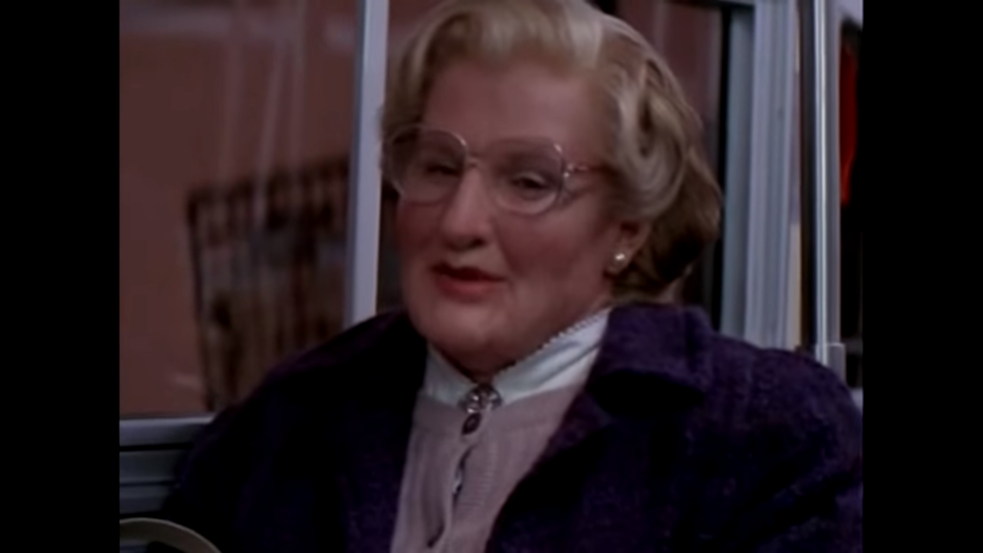 Αξέχαστη θα παραμείνει και η ασύλληπτη ερμηνεία του ως Mrs. Doubtfire, στην ομώνυμη ταινία (1993), σε σκηνοθεσία Chris Columbus. Σχεδόν αγνώριστος μέσα από τη μεταμφίεση του, ξεκαρδιστικός, σαρωτικός, έξυπνος, είναι ολόκληρη η ταινία. Η Ακαδημία παρόλα αυτά παρέμεινε ασυγκίνητη μπροστά σε μία από τις καλύτερες μεταμφιέσεις που έχουμε δει στη μεγάλη οθόνη (!!) και δεν τον τίμησε με υποψηφιότητα.