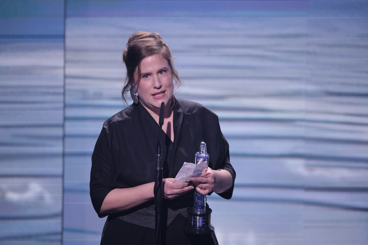 «Θέλω να ευχαριστήσω τον Γιοακίμ που με επέλεξε. Ηταν η πρώτη φορά που με διάλεξε ένας σκηνοθέτης που ήξερα όλες τις ταινίες του και τις λάτρευα όλες. Θα ήθελα αυτό να εμπνεύσει κι άλλους σκηνοθέτες να επιλέγουν γυναίκες συνθέτριες. Ευχαριστώ».