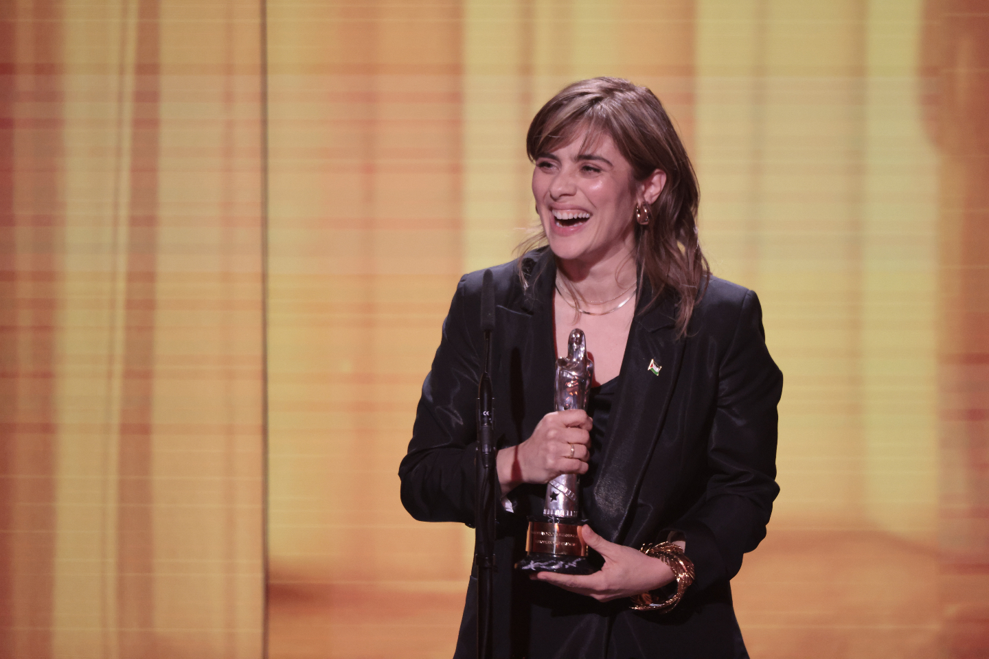 Η Mατίλντα ντε Ανγκέλις, η πρωταγωνίστρια του «Siblings» της Ιταλίδας Γκρέτα Σκαράνο, επί σκηνής για να παρουσιάσει τους υποψηφίους.