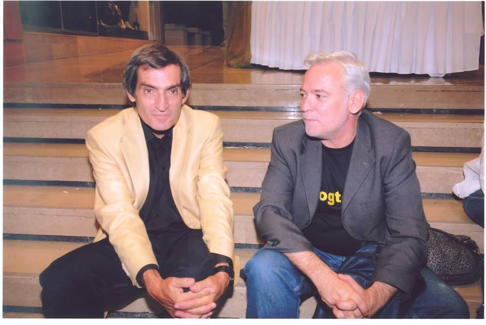 Ο Γιώργος Παπαλιός και Τέλλος Φίλης στην πρεμιέρα του Κυνόδοντα στα σκαλιά του Δαναού στην Αθήνα