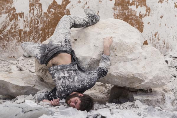 Ο Θοδωρής Τράμπας σκιαγραφεί τη διαδικασία της ένωσης μέσα από την καταστροφή, την ανάγκη για συμφιλίωση με την άλλη πλευρά, μέσα από μια performance μακράς διάρκειας. Σε έναν κλειστό χώρο 6 x 7 μέτρων, επί 7 εβδομάδες, 8 ώρες την ημέρα, το σώμα αναμετριέται με το υλικό, ένα μεγάλο κομμάτι βράχου, δημιουργώντας ένα αντίγραφό του από γύψο.