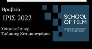Ανακοινώθηκαν οι φετινές υποψηφιότητες για τα Βραβεία ΙΡΙΣ 2022. Μέσα στις 12 φοιτητικές ταινίες στη κατηγορία των Σπουδαστών οι οποίες θα μας απασχολήσουν φέτος, η Ελληνική Ακαδημία Κινηματογράφου ξεχώρισε και χάρισε την υποψηφιότητα σε 7 ταινίες που έχουν δημιουργηθεί από σπουδαστές του Τμήματος Κινηματογράφου της Σχολής Καλών Τεχνών του ΑΠΘ.