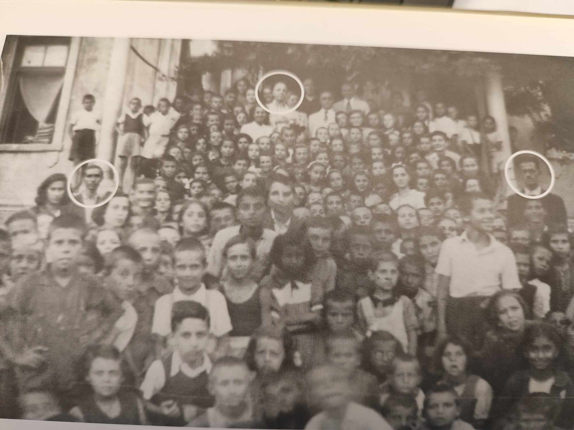 Από την επίσκεψη του στρατιωτικού Μαξιμιλιανού Μέρτεν, στο Χορτιάτη, στις 30 Αυγούστου του 1943. Διακρίνεται στον πάνω κύκλο ο πρόεδρος του χωριού, Χρήστος Μπαντάτσιος και δεξιά ο διευθυντής του σχολείου, Γιώργος Βαλαχάς.