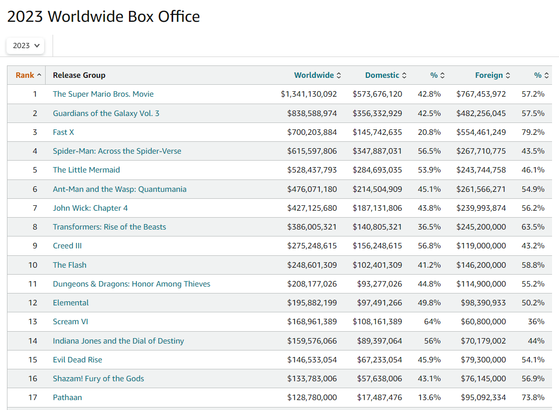 Παγκόσμια γεγονότα, συμπεριλαμβανομένης της συνεχιζόμενης πανδημίας Covid-19, συνέβαλαν επίσης στις προκλήσεις που αντιμετωπίζει η κινηματογραφική βιομηχανία. Ο Charles Gant, ο συντάκτης του box office για το Screen International, δηλώνει ότι η ανάκαμψη των κινηματογράφων από το 2020 που καταστράφηκε από την πανδημία ήταν πιο αργή από ό,τι αναμενόταν. Στο Ηνωμένο Βασίλειο και την Ιρλανδία, τα στοιχεία του box office για το 2023 έχουν μείνει στάσιμα με το 2022. Επιπλέον, οι τίτλοι του Χόλιγουντ γνώρισαν αδύναμες επιδόσεις στην Κίνα και η απουσία της Ρωσίας από την αγορά εντείνει τις ανησυχίες.