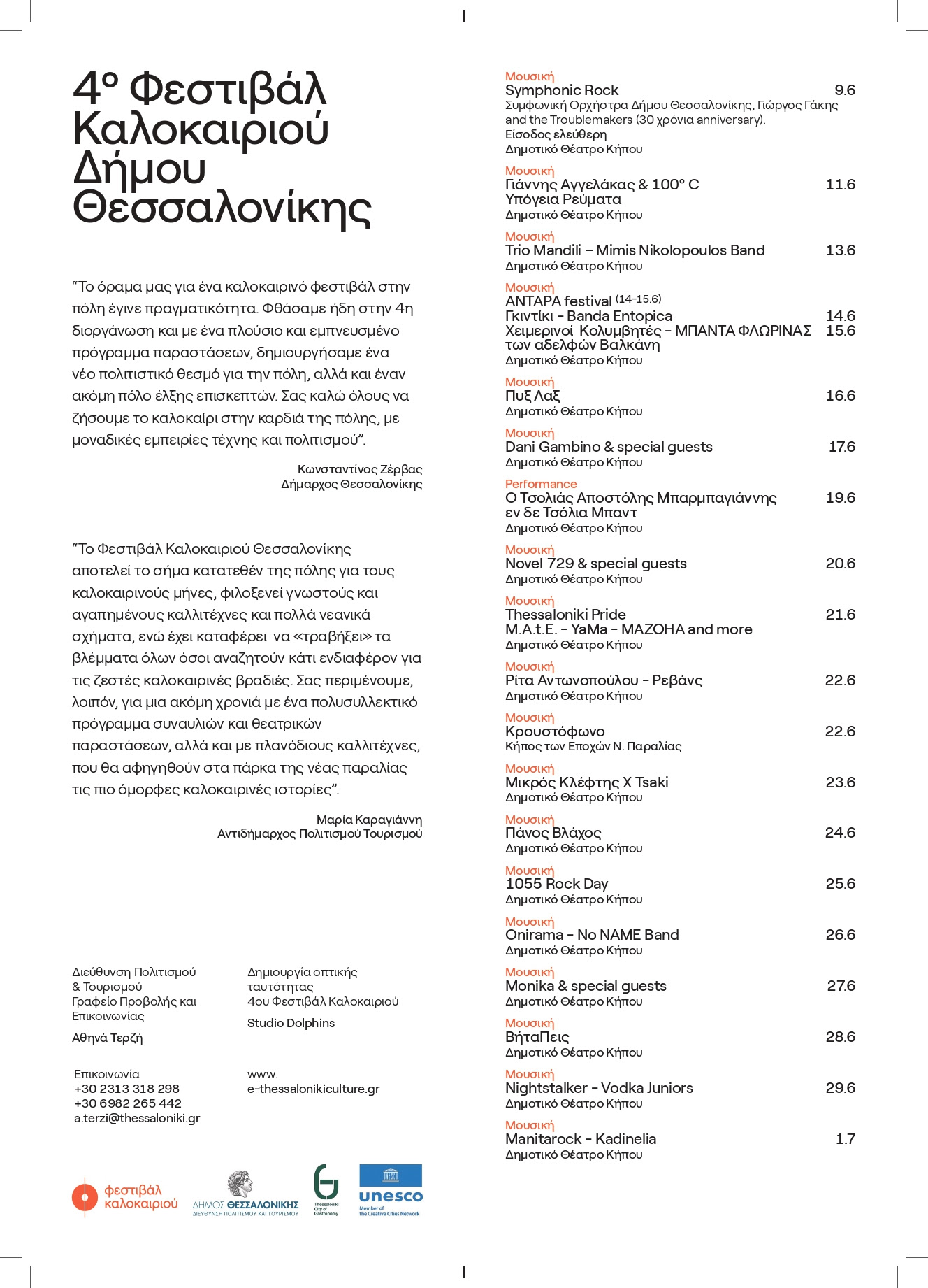 Η αυλαία του Φεστιβάλ Καλοκαιριού θα ανοίξει με τη συναυλία της Συμφωνικής Ορχήστρας του Δήμου Θεσσαλονίκης με τον Γιώργο Γάκη and The Τroublemakers (30χρόνια anniversary), με τον καλλιτέχνη να δηλώνει πως “ο καλύτερος τρόπος για να γιορτάσουμε αυτά τα 30 χρόνια είναι με τους φίλους μας στη Θεσσαλονίκη, γιατί εδώ μεγαλώσαμε μουσικά”.