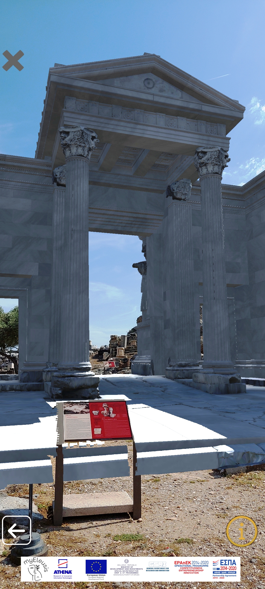 Το αποτέλεσμα αυτής της ψηφιακής ένωσης είναι η δημιουργία μιας εντυπωσιακής εφαρμογής για κινητά τηλέφωνα και τάμπλετ, που δίνει τη μοναδική ευκαιρία στον επισκέπτη του αρχαιολογικού χώρου της Ελευσίνας να περιηγηθεί στην αρχαία πόλη και να θαυμάσει όλα τα μοναδικής αρχιτεκτονικής μνημεία.