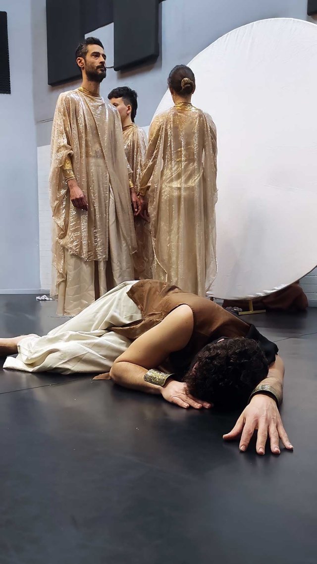 «Με ενδιέφερε η ιδέα του ποιος βλέπει τα γεγονότα και ποιος ζει το αποτέλεσμά τους από το σκοτάδι. Ποιος αποφασίζει τι αξίζει να φανεί και τι να μείνει στο περιθώριο και πώς τα πάντα συνδέονται και δημιουργούν μια κοινή πορεία ακόμα και αν δεν υπάρχουν μάρτυρες για να τα δουν. Είναι σημαντικό για ’μένα ο θεατής να επιλέξει συνειδητά το τι θα δει και πού θα εστιάσει και τι θα αφήσει και θα θυσιάσει», αναφέρει ο σκηνοθέτης. «Στην παράσταση συνυπάρχουν διαφορετικά επίπεδα – το ανθρώπινο, το εσωτερικό, το κοσμικό και το θεϊκό – που άλλοτε συγκρούονται και άλλοτε συνδιαμορφώνουν την πορεία του ήρωα».