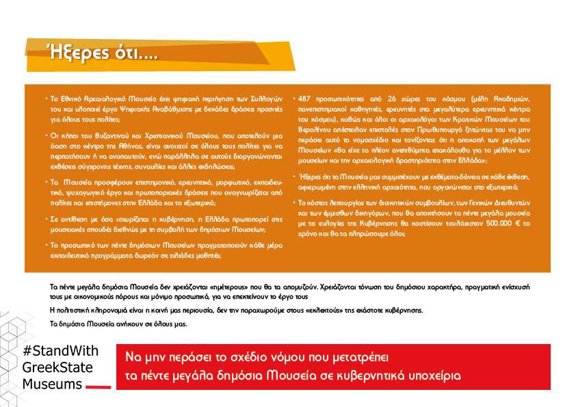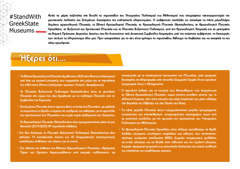 Οι εργαζόμενοι και εργαζόμενες των Μουσείων θα είναι εκεί για να σας εξηγήσουν γιατί αντιπαλεύουν τα σχέδια της κυβέρνησης, γιατί απεργούν τις επόμενες μέρες για να μην περάσει το σχέδιο νόμου.