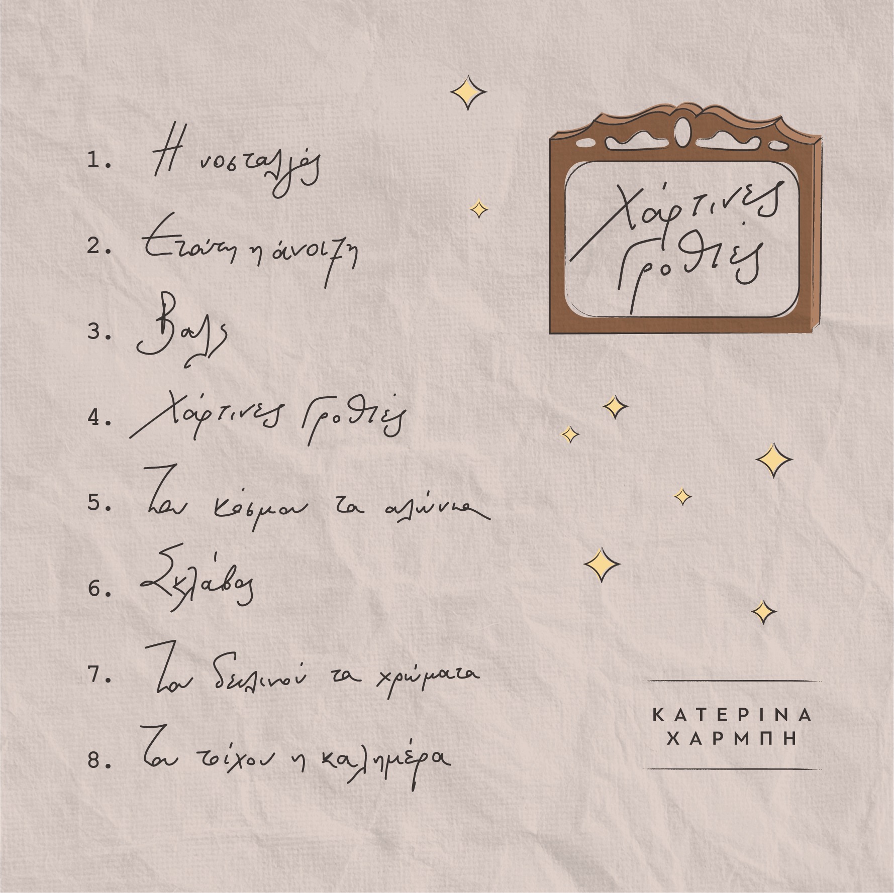 Ο δίσκος της Κατερίνας Χαρμπή ονομάζεται “Χάρτινες Γροθιές” και αποτελείται από 8 τραγούδια σε δικούς μου στίχους και μουσική. Ένα από τα τραγούδια ερμηνεύει ο τραγουδιστής Αλέξανδρος Κούστας. Τα υπόλοιπα τραγούδια είναι σε δική μου ερμηνεία. Η ενορχήστρωση είναι του μουσικού Δάνη Κουμαρτζή. Την μίξη και το mastering του δίσκου έχει κάνει ο Χρήστος Μέγας. Το artwork που συνοδεύει το δίσκο, το έχει επιμεληθεί η Δέσποινα Γεωργιάδου. Τα τραγούδια ηχογραφήθηκαν στην Θεσσαλονίκη, στο στούντιο Seikilo και κυκλοφορούν ψηφιακά από την Digital Minds.
