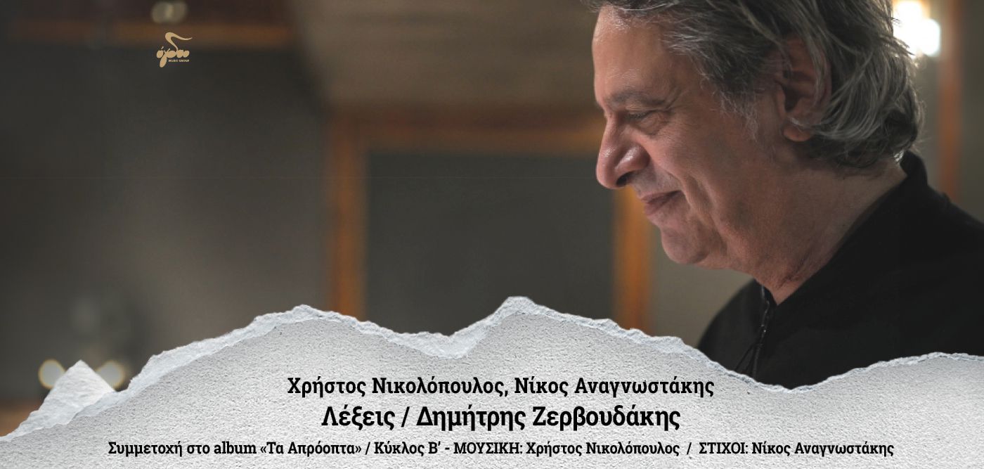 Ο Δημήτρης Ζερβουδάκης ερμηνεύει το νέο τραγούδι «Λέξεις» σε μουσική του Χρήστου Νικολόπουλου και στίχους του Νίκου Αναγνωστάκη.