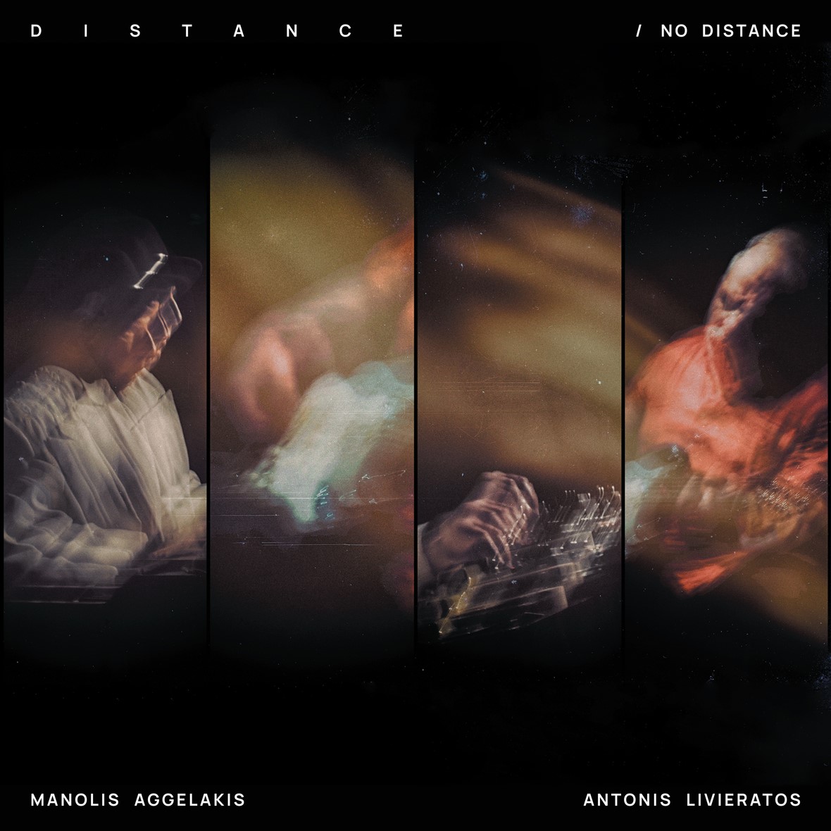 Ο Μανώλης Αγγελάκης και ο Αντώνης Λιβιεράτος είναι φίλοι εδώ και εικοσιπέντε χρόνια. Ένα τέταρτο του αιώνα, αν προτιμάτε. Σε αυτό το, διόλου ευκαταφρόνητο, διάστημα έχουν συνεργαστεί μεταξύ τους πολλές φορές στη σκηνή και στο στούντιο. Έχουν, για παράδειγμα, συμμετάσχει ο καθένας σε προσωπικά άλμπουμ του άλλου, ενώ ήταν και οι δυο ιδρυτικά μέλη των Illegal Operation. Το Distance/No Distance είναι το πρώτο άλμπουμ που συνυπογράφουν ως ντούο. Πρόκειται για ένα άλμπουμ που αποτελείται από τέσσερα μεγάλα, περίπου δεκάλεπτης διάρκειας, κομμάτια στα τρία εκ των οποίων οι μοναδικές ηχητικές πηγές είναι μία ηλεκτρική κιθάρα (Αγγελάκης) κι ένα όργανο (Λιβιεράτος). Στο τέταρτο έχει προστεθεί μια δεύτερη κιθάρα και το όργανο έχει δώσει τη θέση του σε ένα ηλεκτρικό πιάνο κι ένα synth. Μια και το συνολικό αποτέλεσμα είναι πολύ θορυβώδες για να χαρακτηριστεί ambient και πολύ “ατμοσφαιρικό” για να βαφτιστεί noise προτιμήθηκε ο χαρακτηρισμός ambient/noise (οτιδήποτε κι αν μπορεί να σημαίνει αυτό).