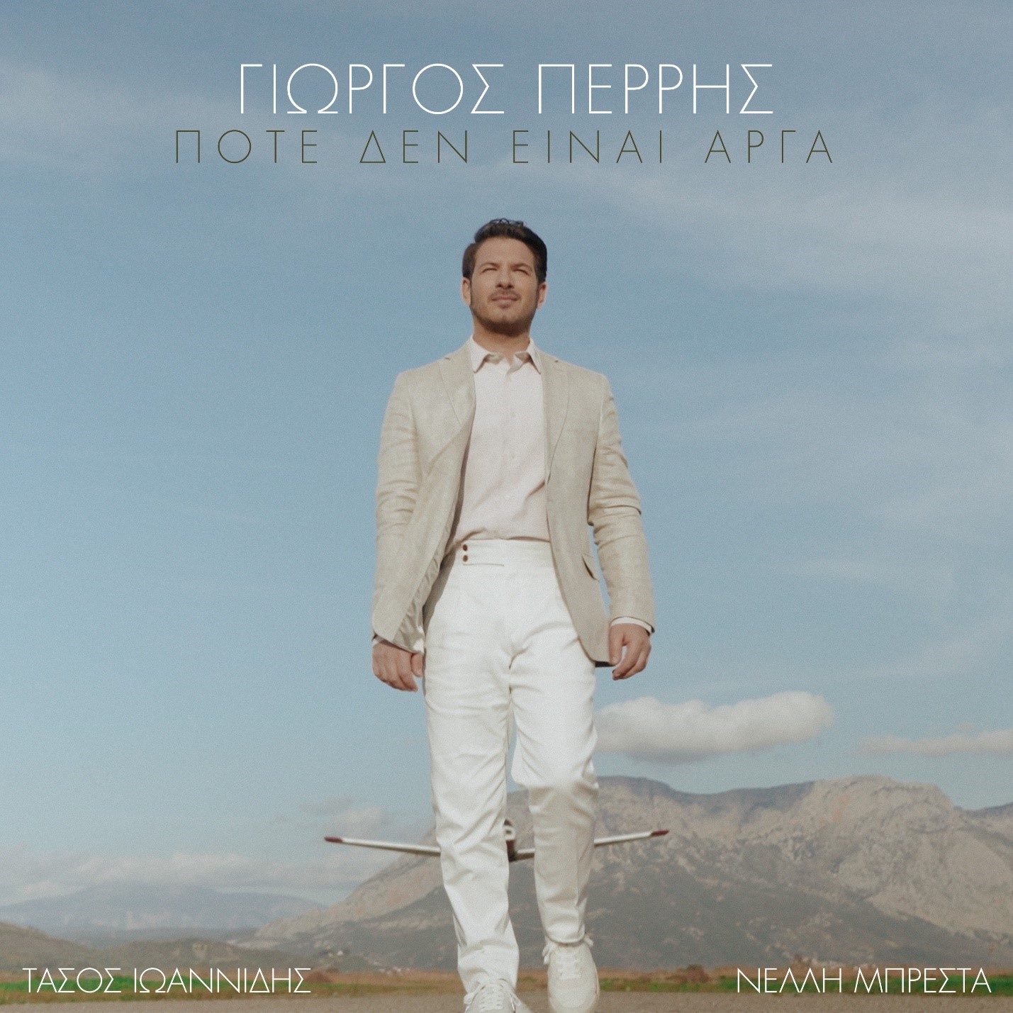 Ένα καινούργιο μουσικό ταξίδι με ένα αισιόδοξο, δυνατό μήνυμα ξεκινάει με τη μοναδική φωνή του Γιώργου Περρή. «Ποτέ δεν είναι αργά», τραγουδά ο Γιώργος καλωσορίζοντας το καλοκαίρι, την εποχή που αφήνουμε τα συναισθήματά μας να μας κυριεύσουν. Έτσι και το τραγούδι, σε στίχους της Νέλλης Μπρέστα και μουσική του Τάσου Ιωαννίδη, μας προτρέπει να δούμε τα λάθη μας με αγάπη και τον εαυτό μας με κατανόηση, να σκεφτούμε τα πως και τα γιατί της ύπαρξης με διάθεση συγχώρεσης αλλά και να χαρούμε τη ζωή. Μοναδικός πάντα στις ερμηνείες του, ο Γιώργος Περρής χαρίζει στα τραγούδια κάτι από τη διεθνή του καριέρα, μία δύναμη που συναγωνίζεται την ευαισθησία του. Η χαρούμενη τρομπέτα των Βαλκανίων φλερτάρει με τα παθιασμένα έγχορδα στην ευφάνταστη ενορχήστρωση του Σταύρου Καρτάκη, δίνοντας στο «Ποτέ δεν είναι αργά» έναν ήχο που όχι μόνο μένει στο μυαλό, αλλά και συγκινεί. Στο βίντεο κλιπ του τραγουδιού ο Γιώργος Περρής γίνεται πιλότος στα όνειρά μας και «με δύναμη ψυχής» μας ταξιδεύει όλο και πιο ψηλά στον ουρανό των επιθυμιών. Η ξεχωριστή σκηνοθετική ματιά της Κλαίρης Φαφούτη φέρνει τον αγαπημένο καλλιτέχνη μέσα και πάνω από τα σύννεφα, να πιλοτάρει πάνω από τις λίμνες του Μεσολογγίου και τις παραλίες της Λευκάδας. Το πρωτότυπο βίντεο κλιπ, που είναι ουσιαστικά μια ταινία μικρού μήκους, πραγματοποιήθηκε με την ευγενική υποστήριξη της γνωστής κατασκευαστικής εταιρείας ECLEDE και της καλλιτεχνικής εταιρείας 47Circle.